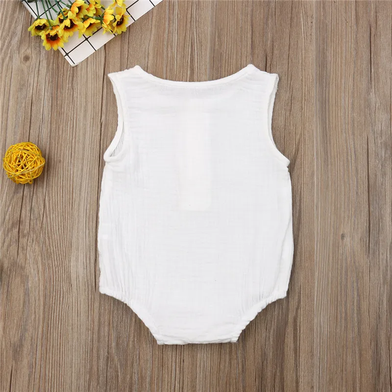 Комбинезон унисекс на пуговицах без рукавов для маленьких мальчиков и девочек, однотонный цельный комбинезон из хлопка и льна, детский летний комбинезон