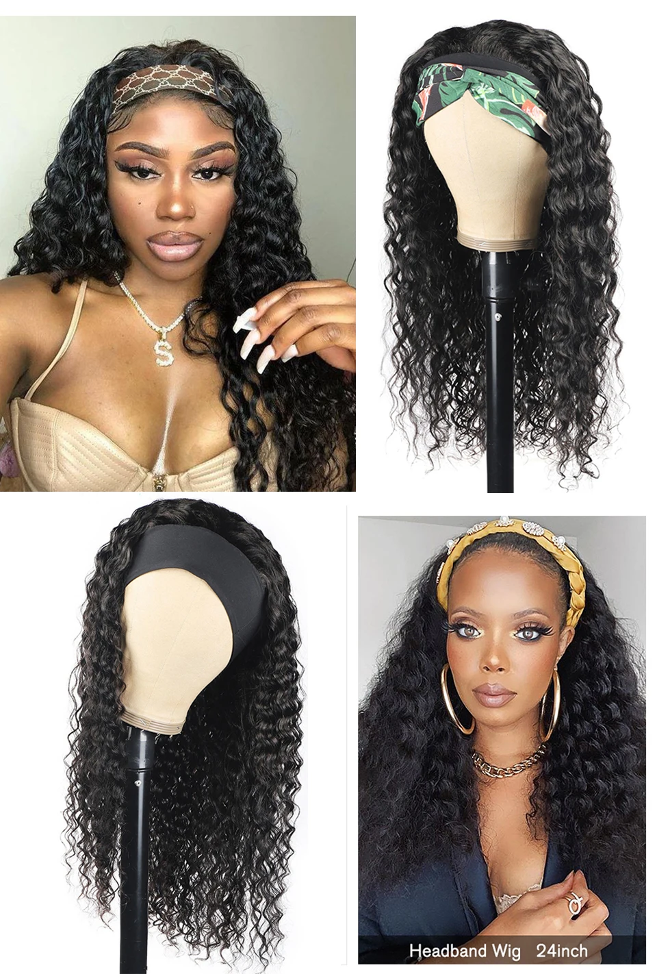 Wigirl глубокая волна парик с головной повязкой человеческие волосы...