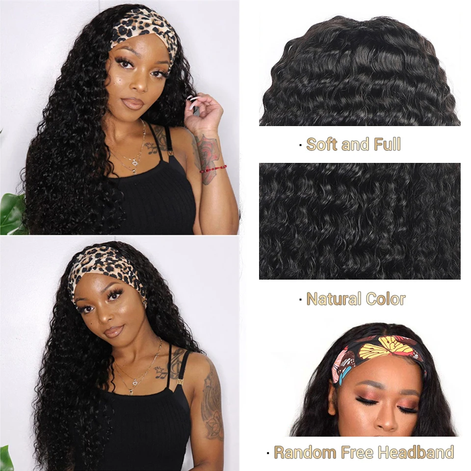 Клюквы волосы глубокая волна парик с головной повязкой парики из натуральных волос для черный Для женщин доступная Реми бразильские парик с головной повязкой с начинающих дружелюбное