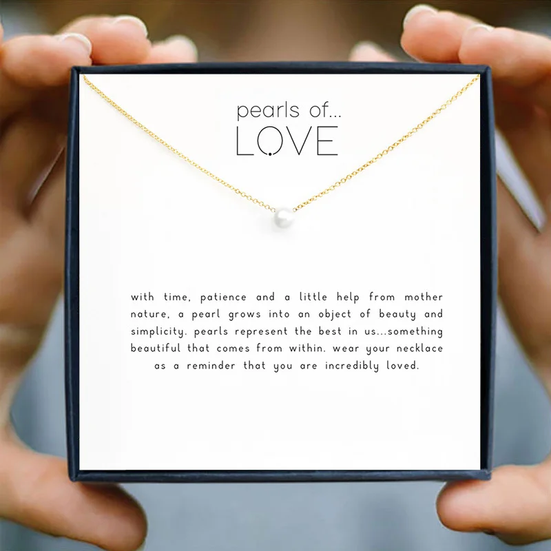 Ожерелье IcareU с жемчужными подвесками для подружки невесты, свадебное предложение с изображением желаний и белых открыток, Подарочная коробка из золотого сплава, короткая цепочка, ювелирные изделия