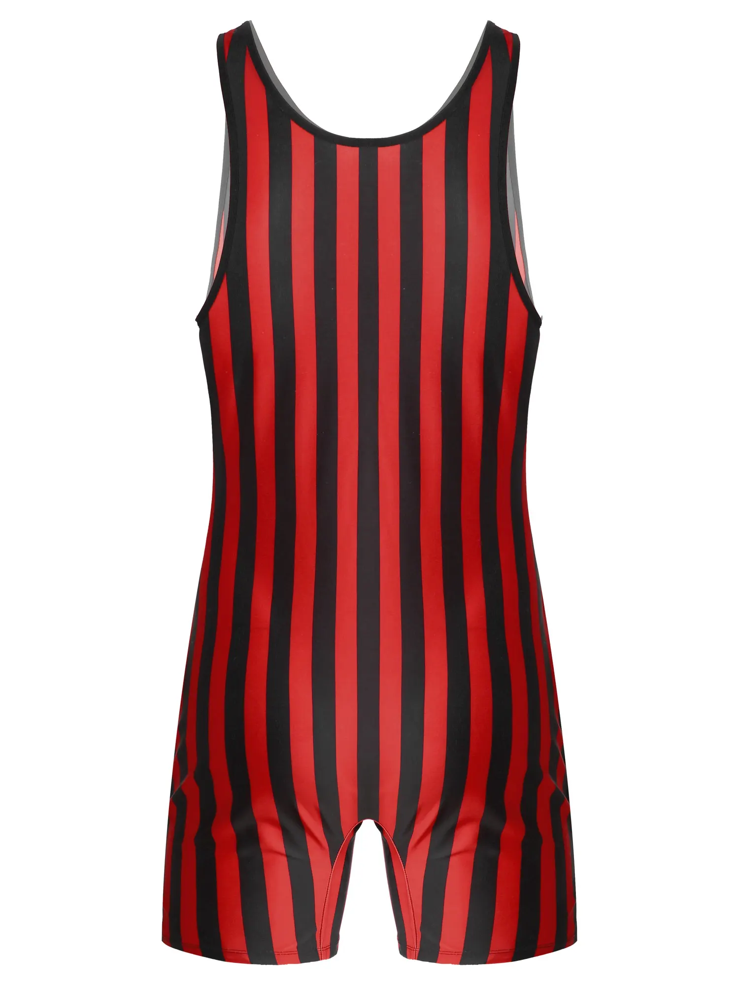 Feature 1Men Striped Wrestling Singlet Bodysuit