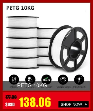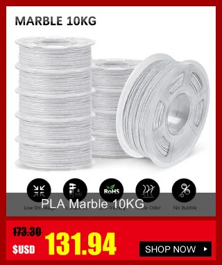 * Диаметр провода: 1,75/3,0 мм* Допуск: ± 0,03 мм* Температура печати: 205-230 ℃* Температура пола: не нужно нагревать* Сила тяги (кгс):/Индекс расплава: 5-8 г/10 мин (190 ℃, 2,16 кг)* Удлинение при разрыве: 600%* Скорость печати: 20-40 мм/сек.* Воздушные пузыри: 100% нулевые пузыри• Вес нетто: 0,5 кг