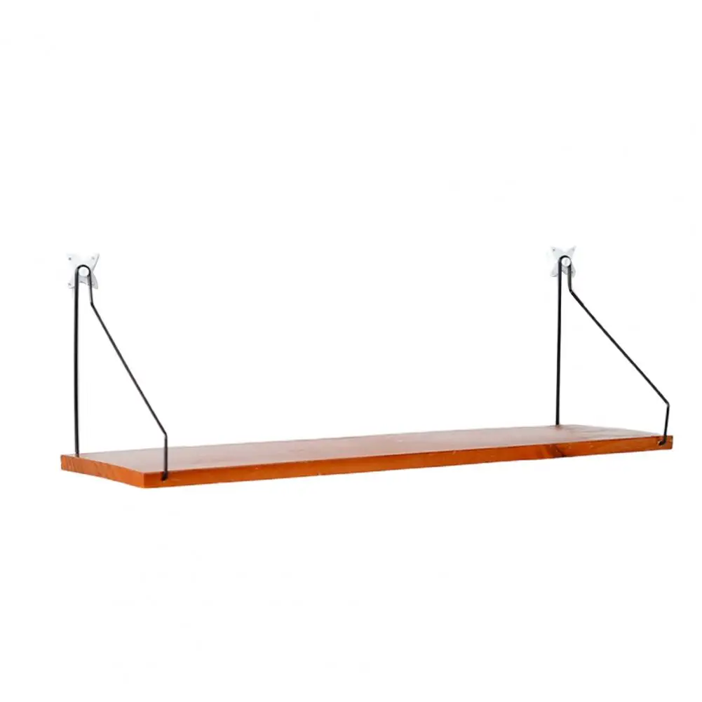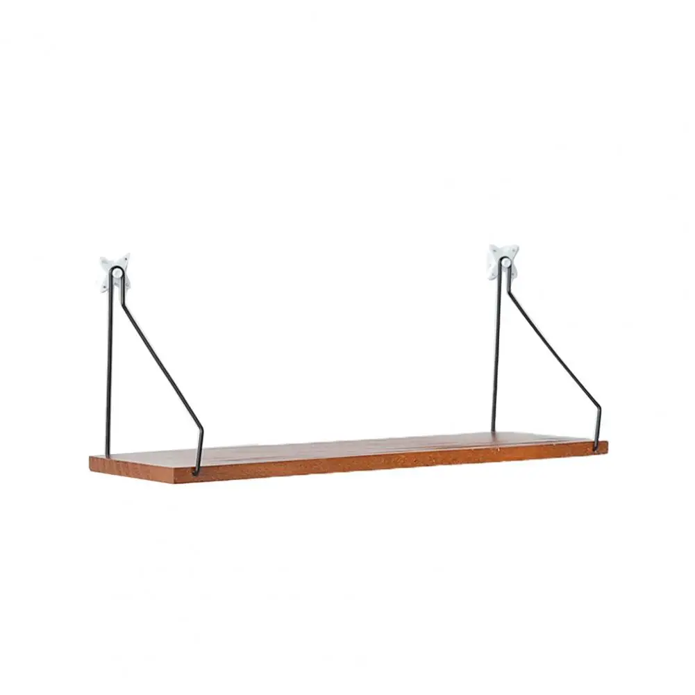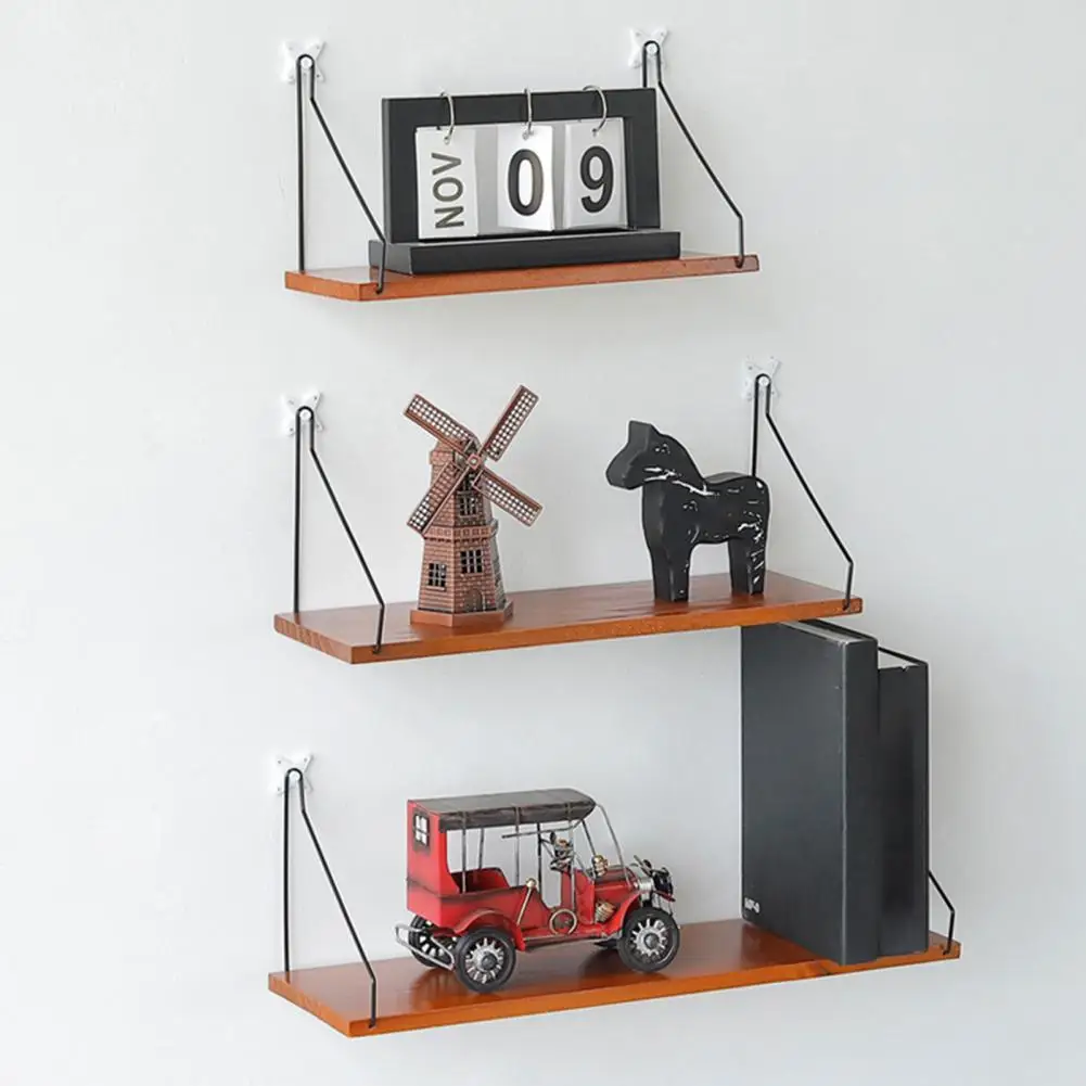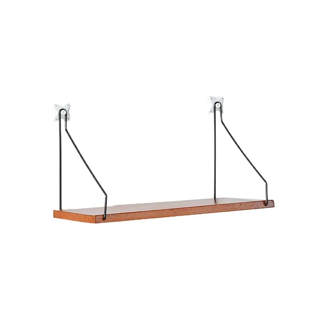 Простой дизайн плавающих полок изготовлен из деревянных досок и железа, и он прочный и полезный.