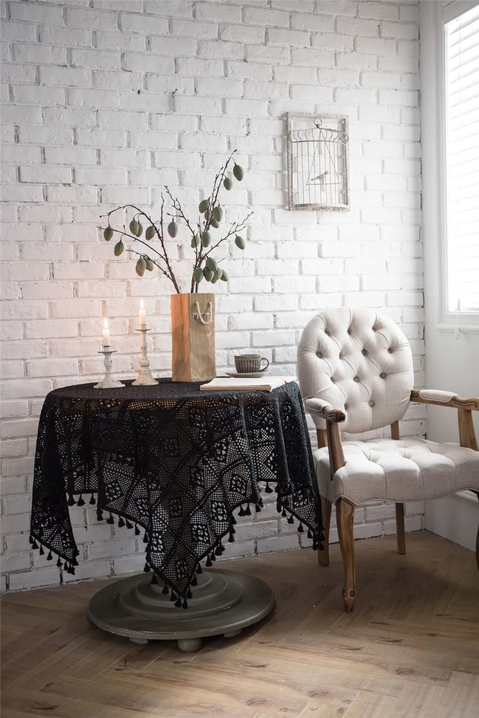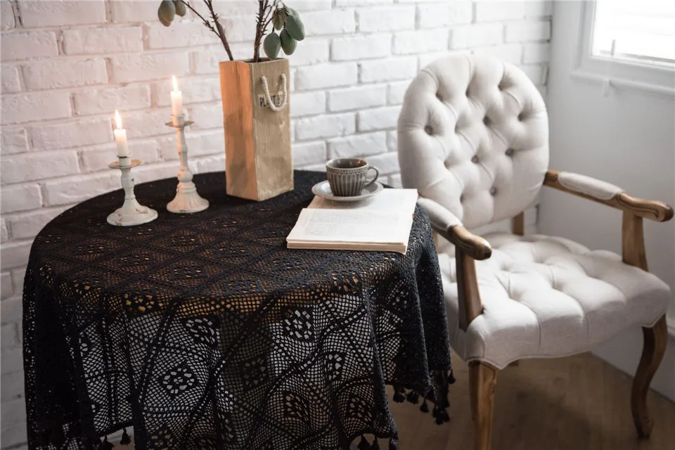 Прямоугольная скатерть кроше в американском сельском стиле, Черная ...