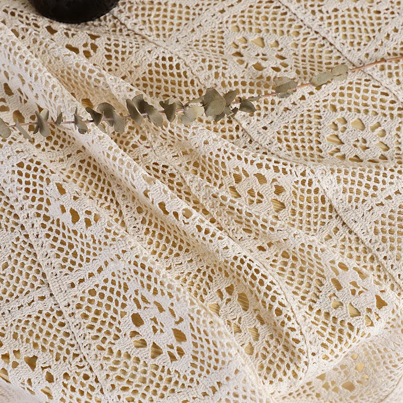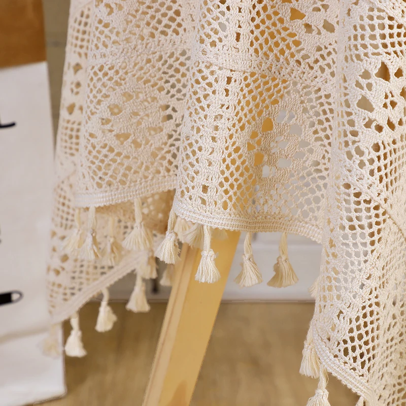 Полый вязаный крючком скатерть, кружевная бежевая ткань, американск...