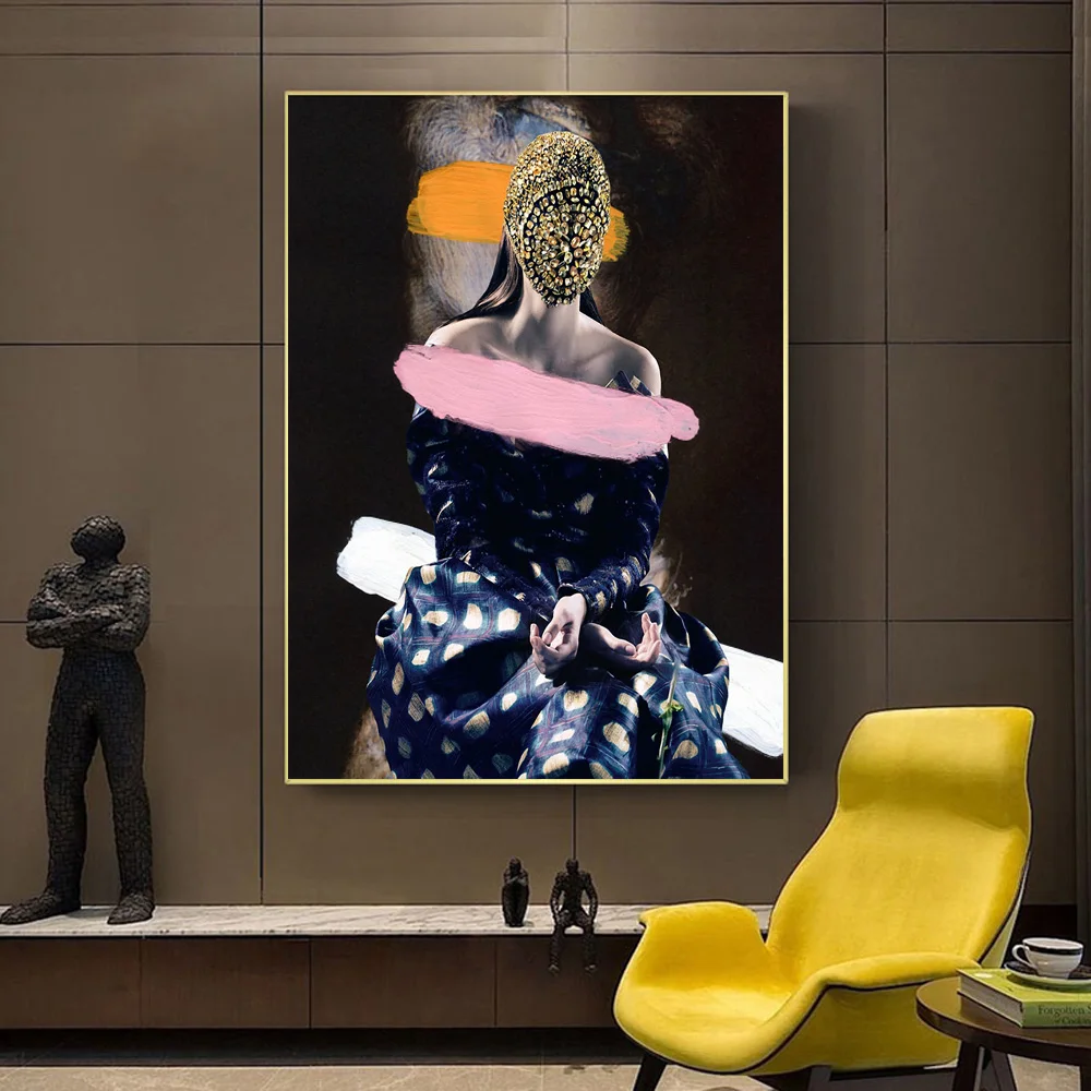 Фэнтези темное лицо с золотом светлый Холст плакат принты абстрактн...