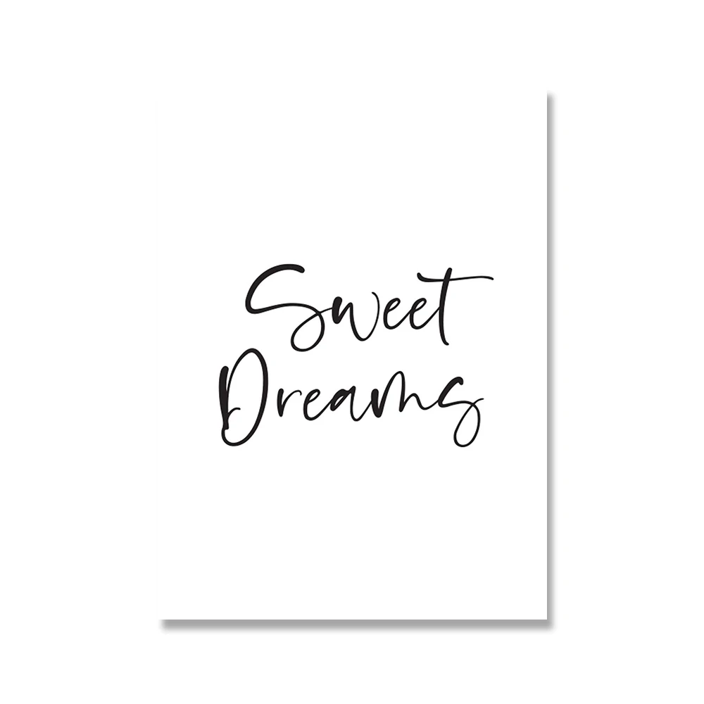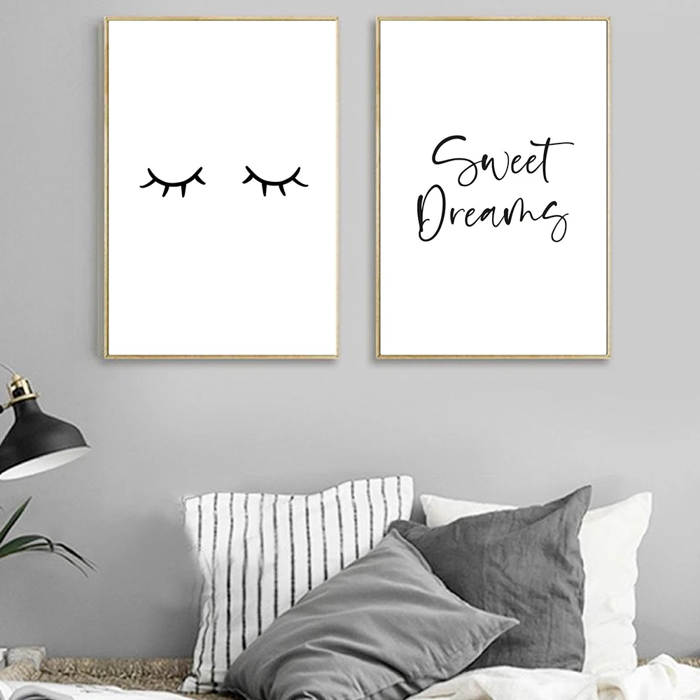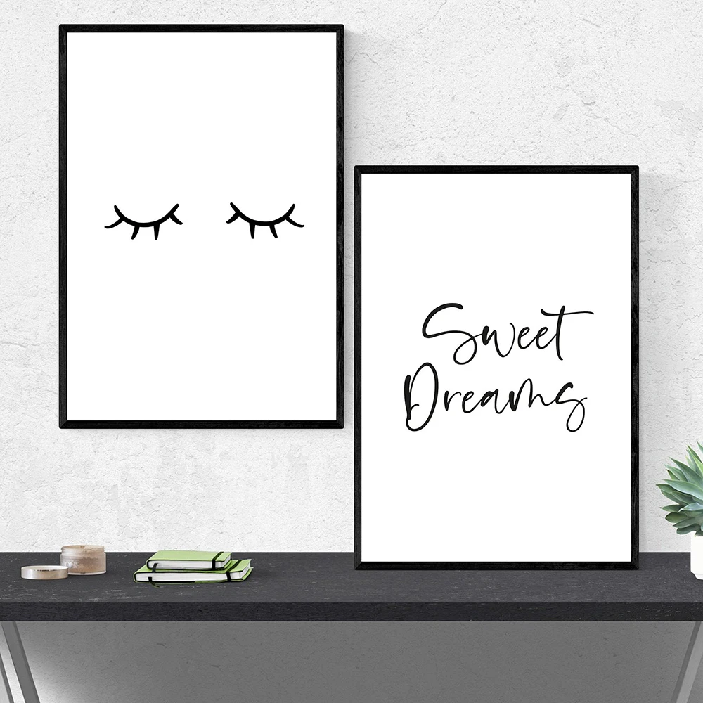 Минималистский Черный и белый сладкие сны цитаты ресницы холст картины детская Плакаты печать, Картина Настенная для Спальня домашний декор