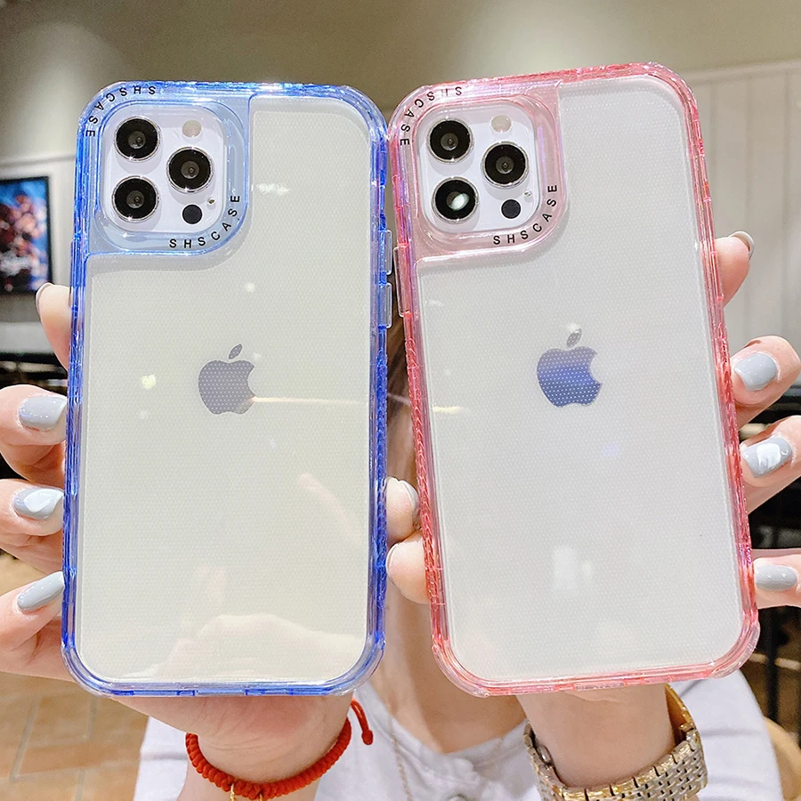 Противоударный двухслойный однотонный чехол карамельного цвета для iPhone 11 12 13 Pro Max 7 8 Plus SE 2020 XR XS Max X, прозрачный чехол для телефона