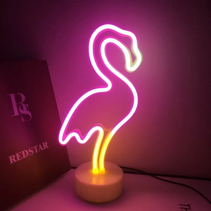 Светодиодный неоновый светильник с USB-батареей, цветная настольная лампа в форме фламинго, кокосового дерева, кактуса, единорога, декоративный светильник для дома