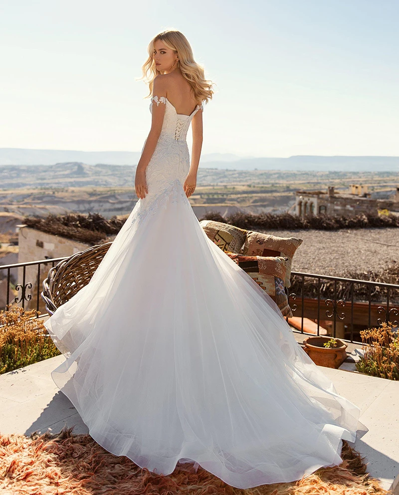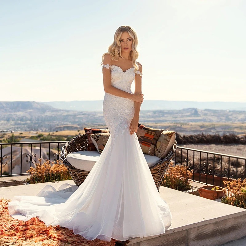 Свадебное платье-Русалка с открытыми плечами, цвет слоновой кости