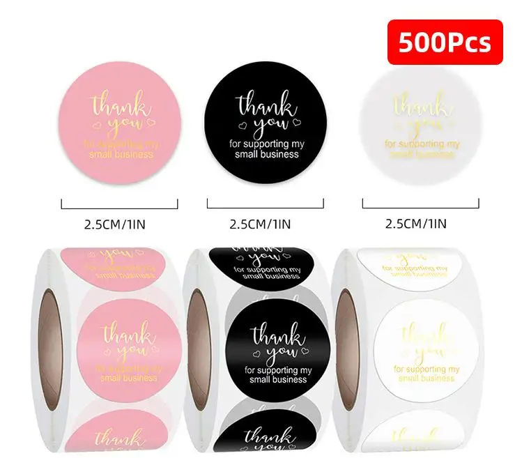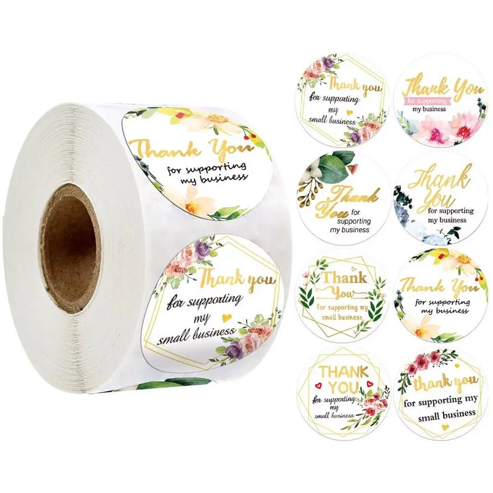 Круглые бумажные наклейки, 500 шт., спасибо за небольшие деловые наклейки с золотой фольгой для подарочной упаковки, поздравительных открыток, букета, почтовой рассылки