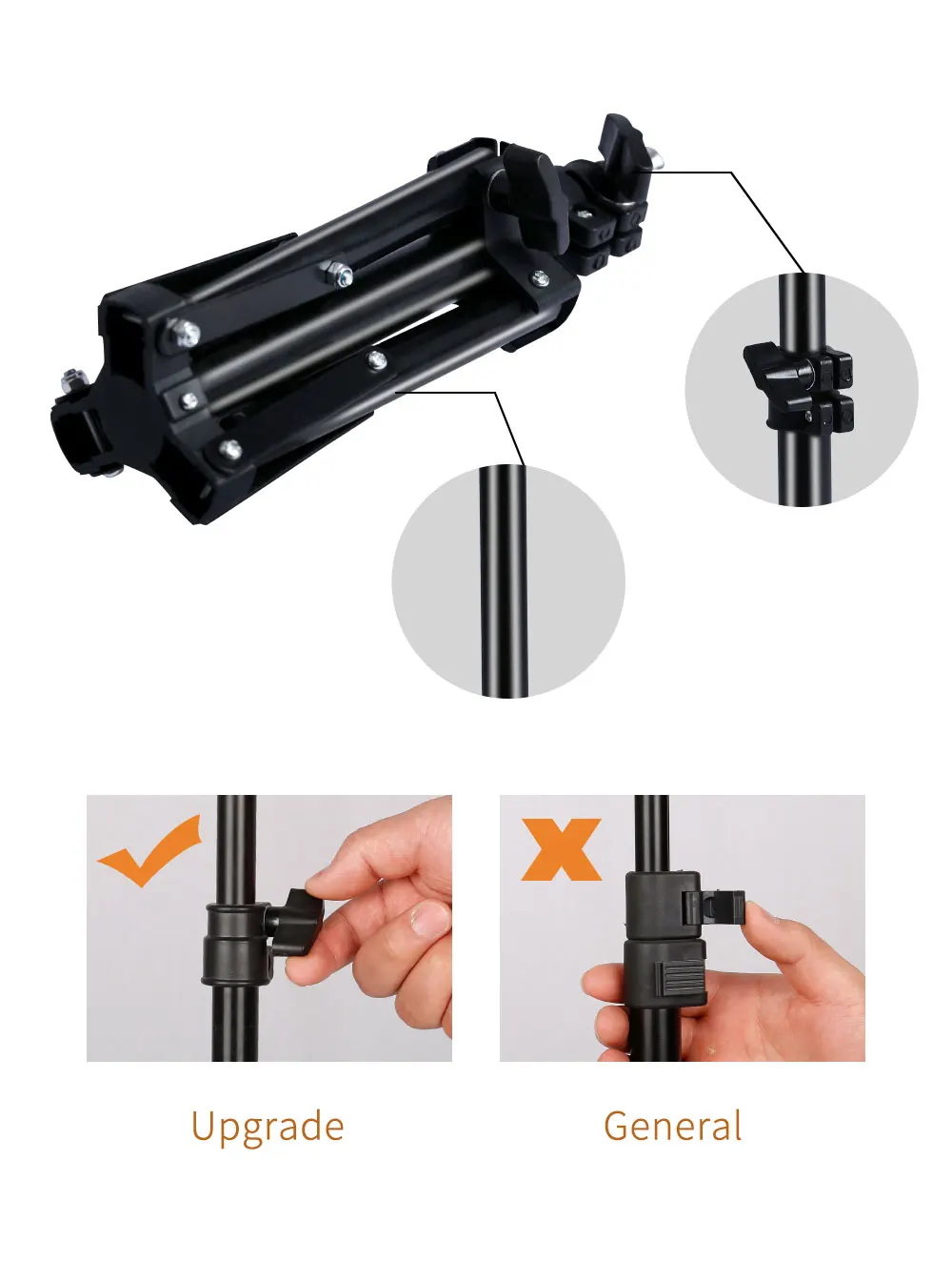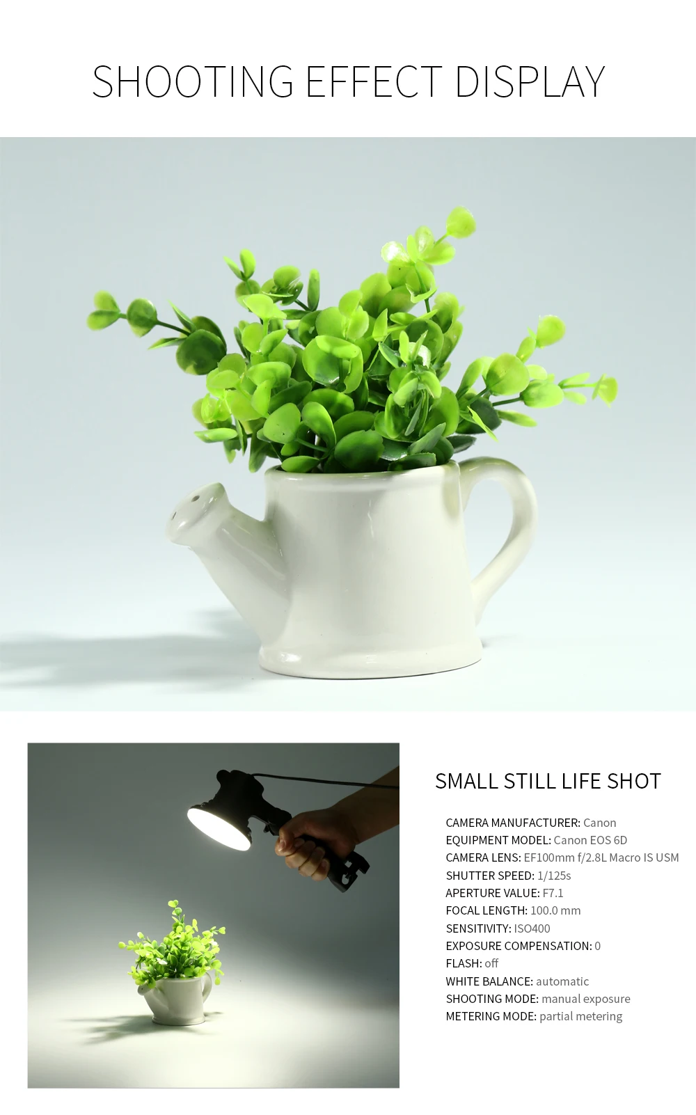 Видео-Светильник поставляется с системой рассеивания тепла, чтобы избежать повреждения лампы из-за чрезмерной температуры и продлить срок службы. Прочный корпус и штатив имеют хорошую гарантию качества.