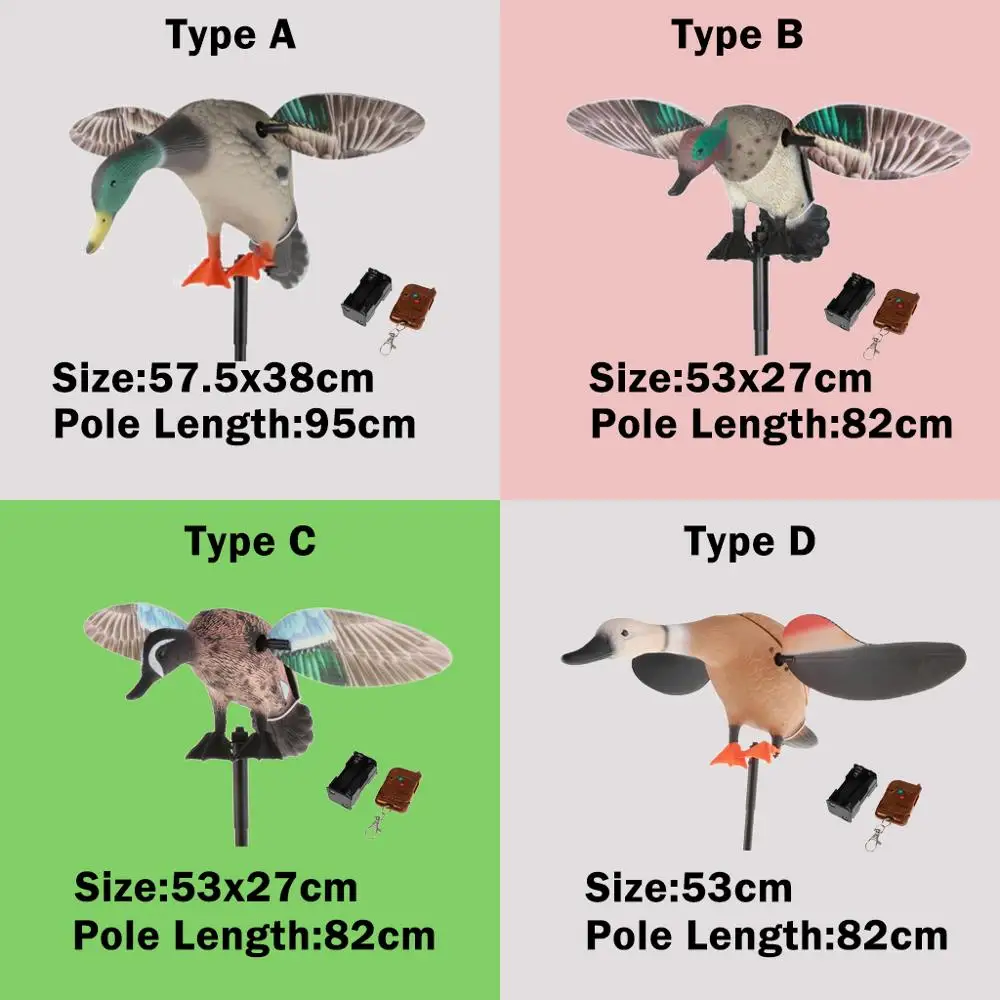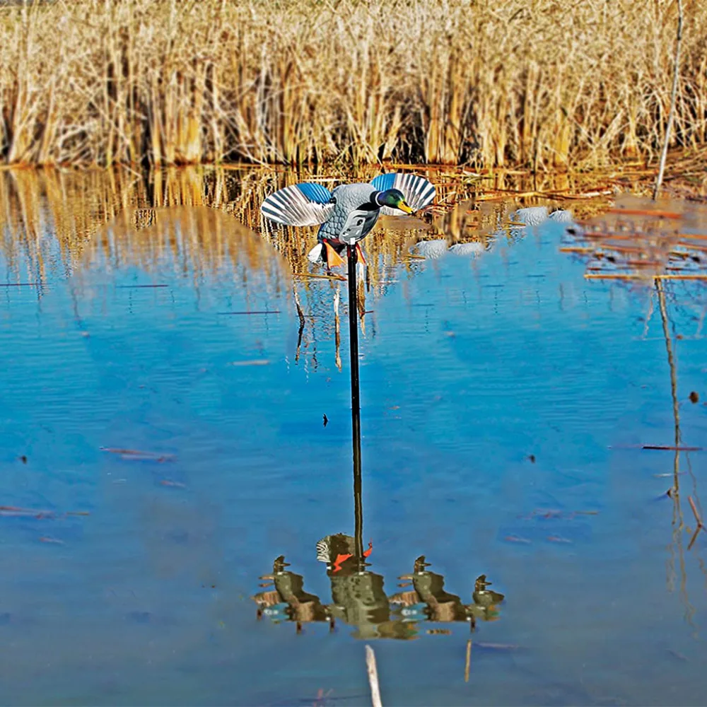Креативное движение спиннинга крыло Кряква утка приманка, чтобы сделать рябь на воде и брызги шумов так же, как живые утки сделать, чтобы привлечь охотника preys37 ''высокий складной опорный столб в комплекте, простой, портативный и эффективныйДистанционное управление обеспечивает стабильную мощность и легкое включение/выключениеВысококачественный PE материал, прочный, прочный и долговечныйРеалистичная кожа декорации с истинными деталями перьев природы и реалистичным ярким цветом обеспечивают вам чудо-охоту