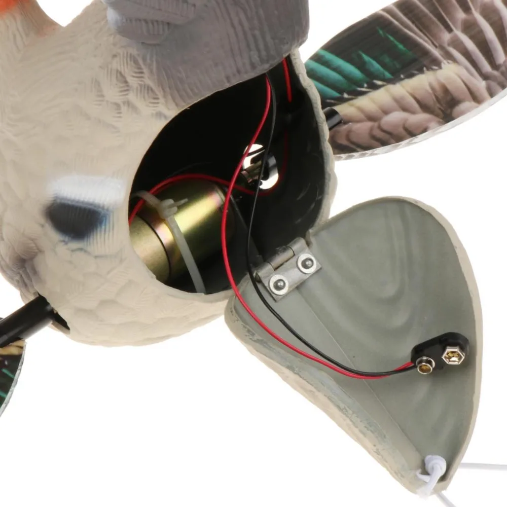 Инновационный дизайн: двигатель, трансмиссия, система электропитания и корпус крепятся к легкодоступному каркасу несущей конструкции, что означает более плавную, более тихую и быструю работуСпециальный съемный корпус заключен в точно прилегающую кожу декорации с истинными деталями пера и цветом для ультра-реалистичного видаЛегко установить с опорным полюсом, держателем аккумулятора и легко вкл/выкл с магнитными прикрепленными крыльямиПрочный корпус соединяет двигатель и крылья непосредственно с опорным полюсом прочный, тихий и минимизирует погремушкуВесь корпус может быть легко удален из тела для простой очистки и обслуживания; Работает на 4 батареях AA (не входят в комплект)