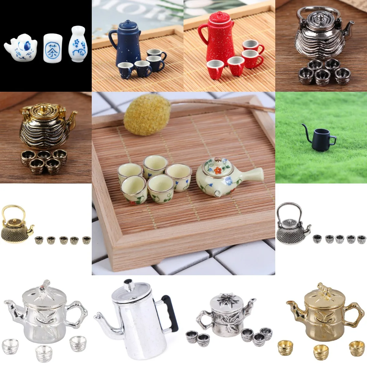 1 шт.1 комплект, металлический чайный набор, 1: 12, миниатюрная мебель для кукольного дома