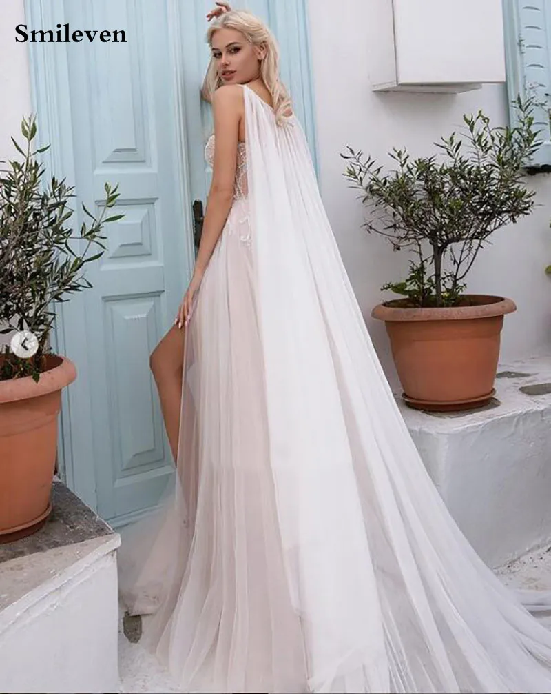 Женское свадебное платье Smileven, на тонких бретелях, с разрезом сбоку, винтажное, свадебные платья в стиле кантри, 2021