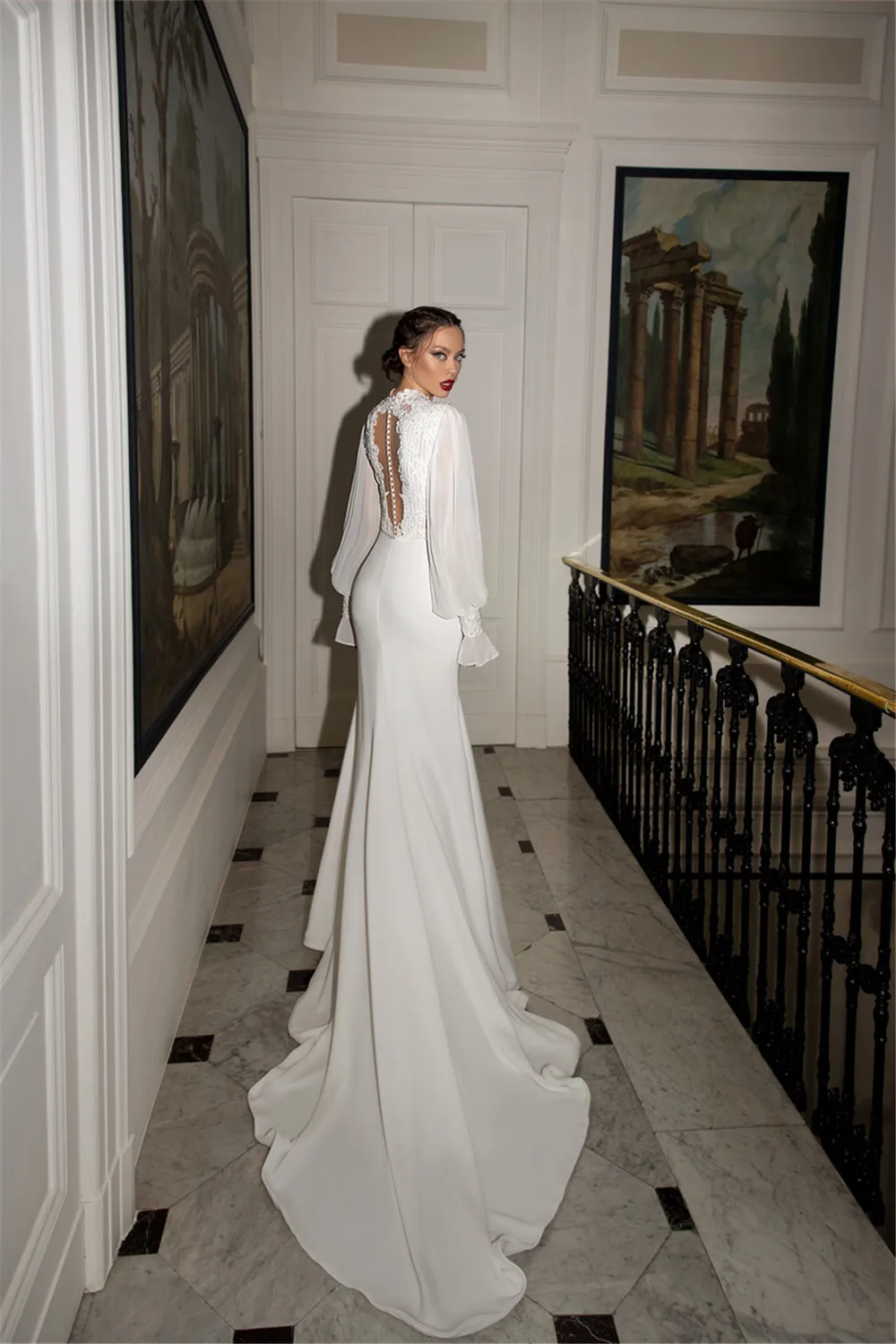 Русалки кружева; Обувь под свадебное платье для невесты с блестками мягкой сатиновой ткани свадебное платье 2021 одежда с длинным рукавом платье принцессы Свадебные вечерние, с низким вырезом на спине и кнопки индивидуальный заказ