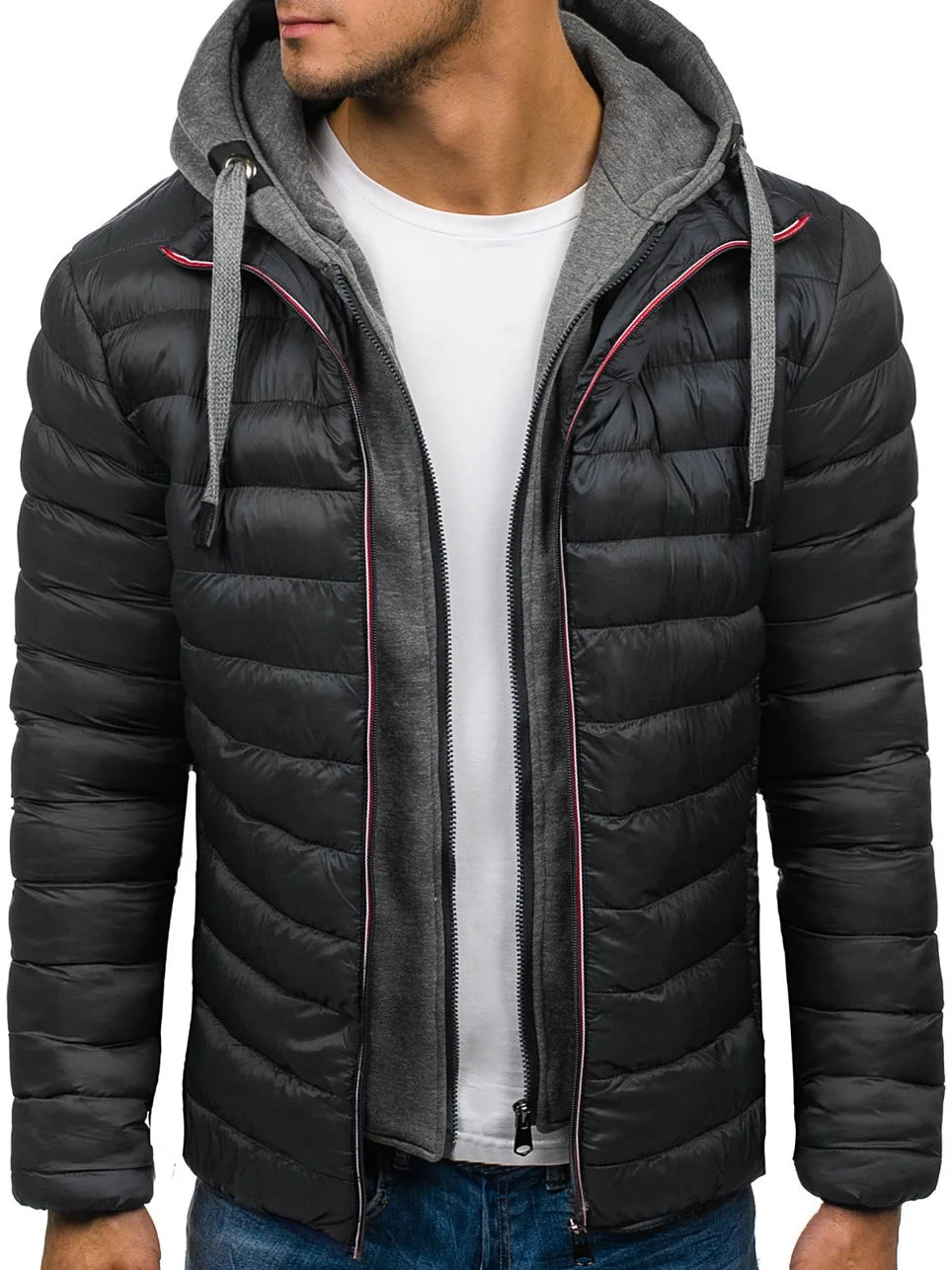 Мужской Хлопковый пуховик с капюшоном, черный однотонный Повседневн...