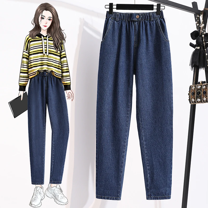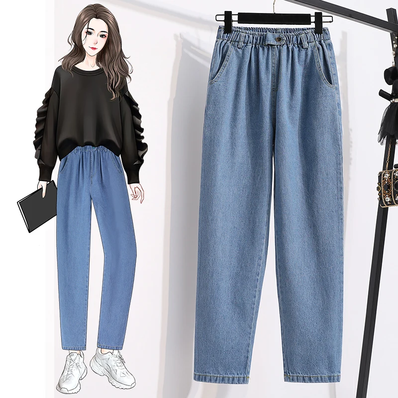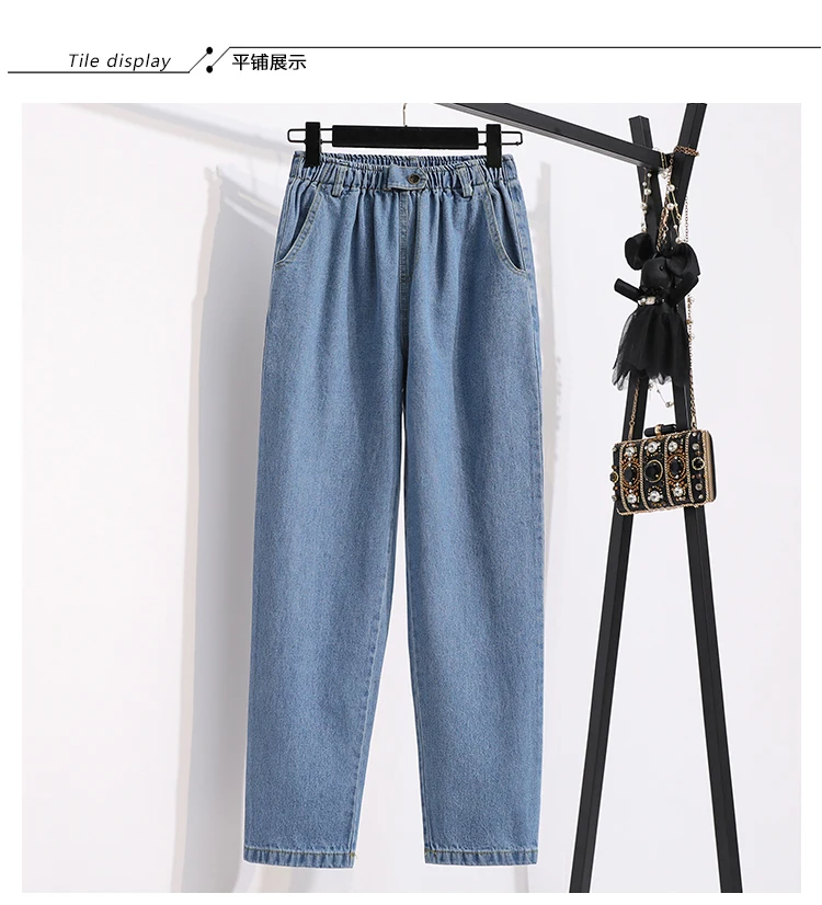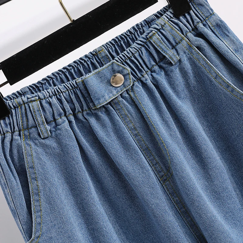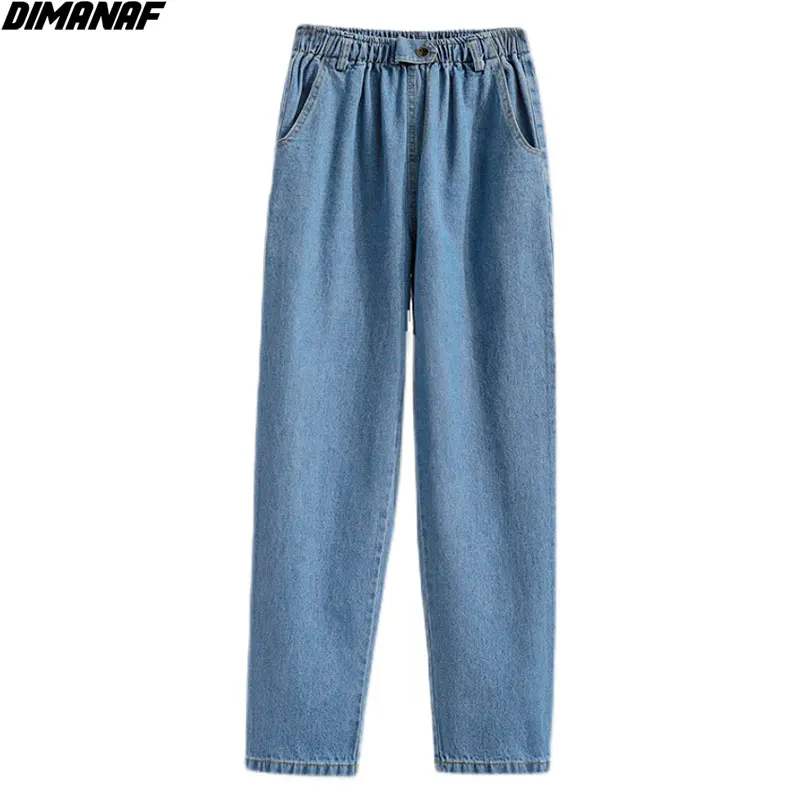 Женские джинсы DIMANAF, голубые свободные штаны из хлопка с высокой талией и эластичной резинкой