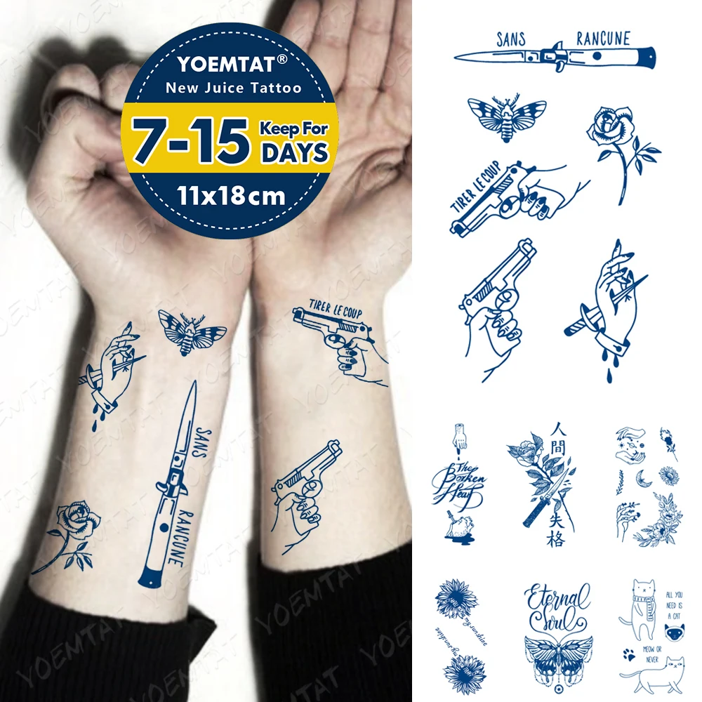 Водостойкая Временная тату-наклейка Juice стойкая пистолет Нож Роза цветок пчела кровь флэш-Тату мужские чернила боди-арт искусственная тату для женщин