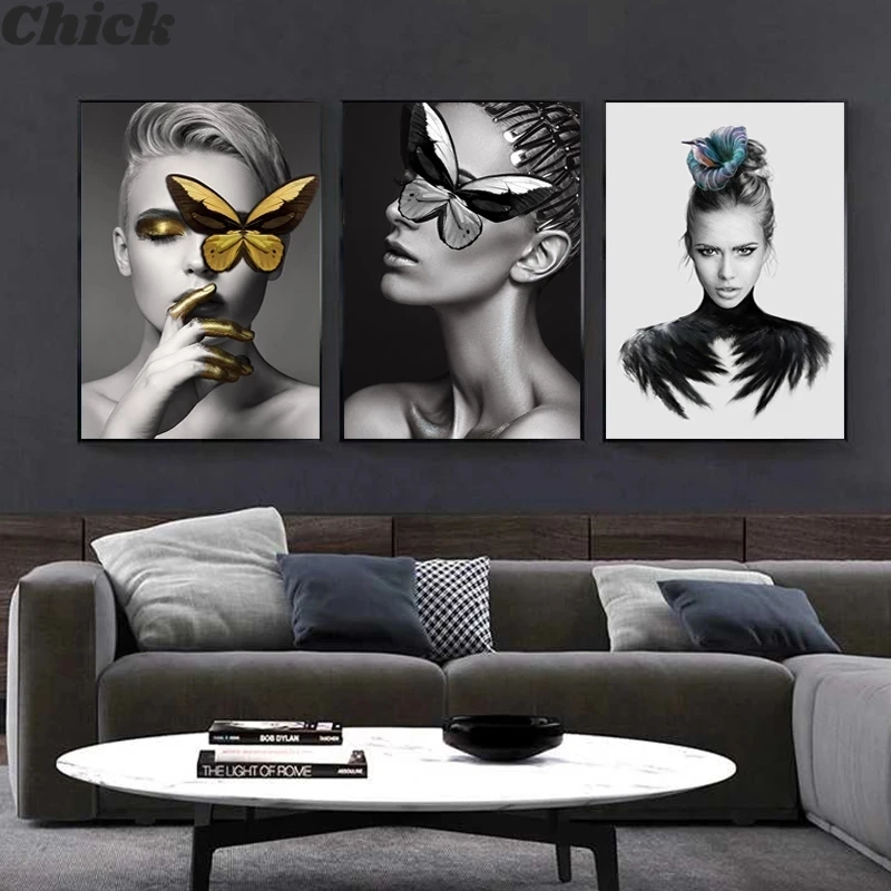 Современное искусство, модная Картина на холсте, черный, белый, Жен...