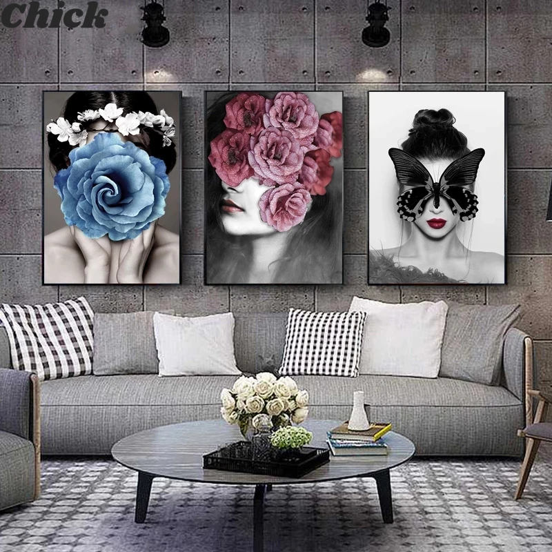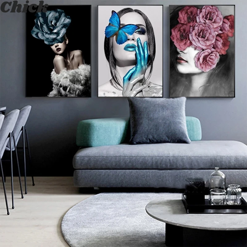 Абстрактные картины на холсте, модная девушка, цветок, настенный художественный плакат для гостиной, Декор, декоративный настенные картины, домашний декор