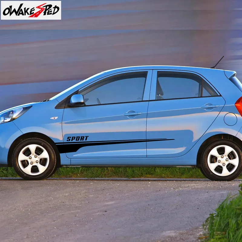 Наклейки для декора боковой юбки кузова автомобиля, наклейки на дверь автомобиля, виниловые спортивные полосы, Стильные наклейки для KIA Picanto Morning, аксессуары