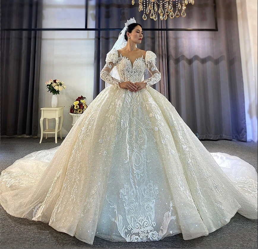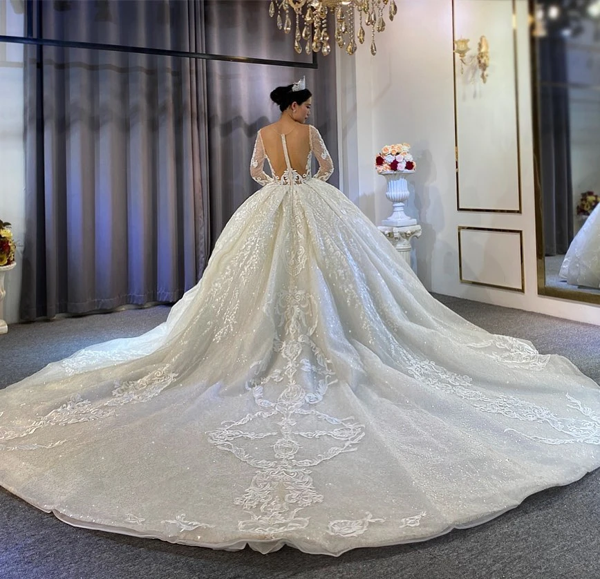 Очаровательные свадебные платья с длинным шлейфом бальное платье с длинным рукавом форма свадебные платья в Дубае Кружевная аппликация