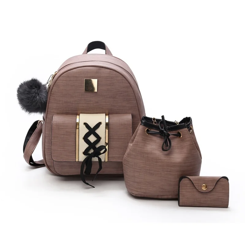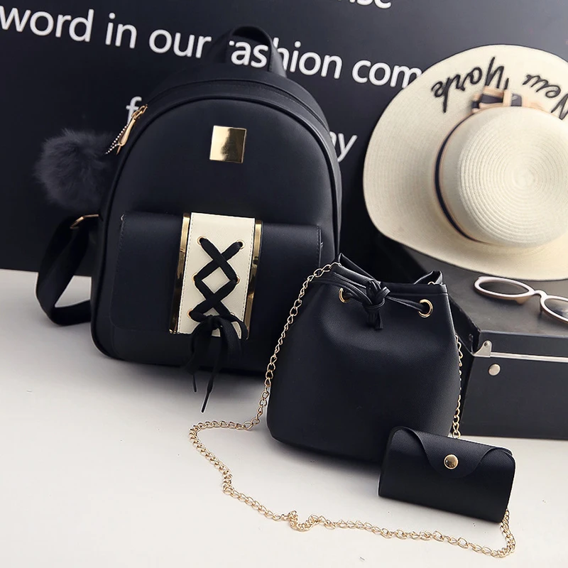 3 шт.компл. женский рюкзак из ПУ кожи, Женский Повседневный Рюкзак + сумка-мешок + кошелек, рюкзак, сумки для девочек-подростков, через плечо 50