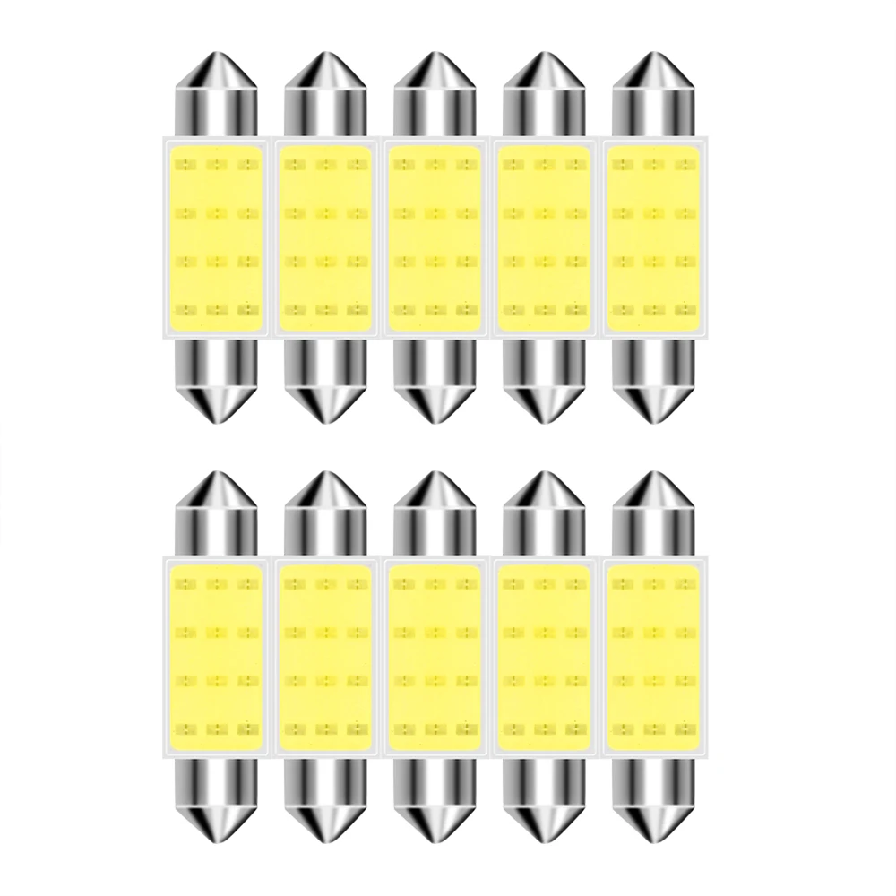 Автомобильные светодиодные лампы 10 шт.лот, автомобильный Cob 1,5 Вт 12 В постоянного тока, внутренняя лампа, лампы для чтения в салоне, лампы 31 мм, 36 мм, 39 мм, 41 мм для автомобилей