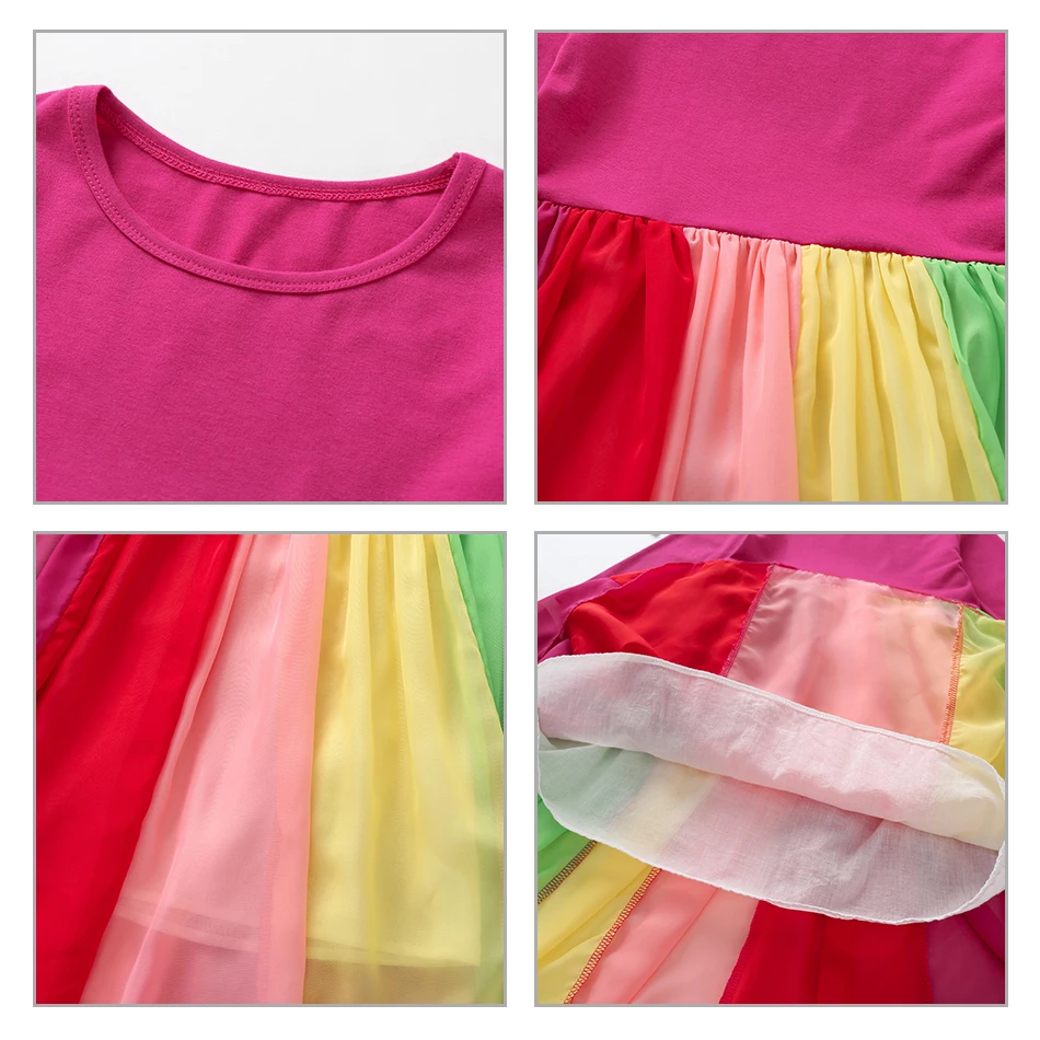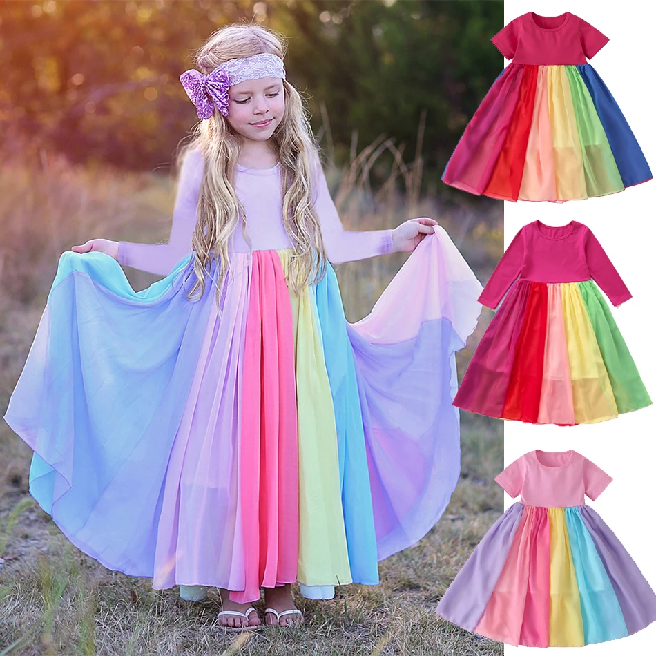Радужное платье для девочек, длинные Хлопковые Платья с коротким рукавом карамельных цветов, милые детские праздничные платья для детей, платье принцессы для девочек
