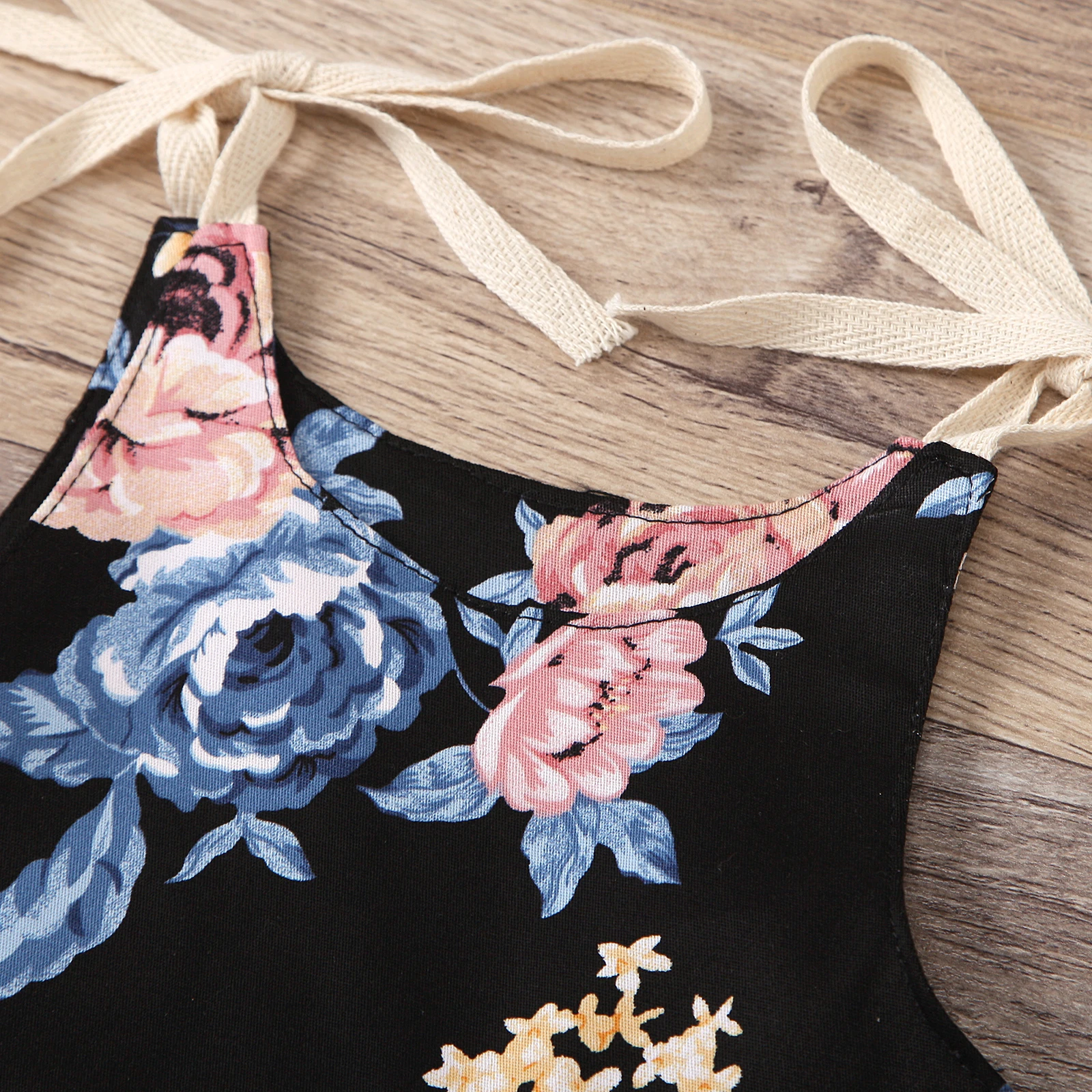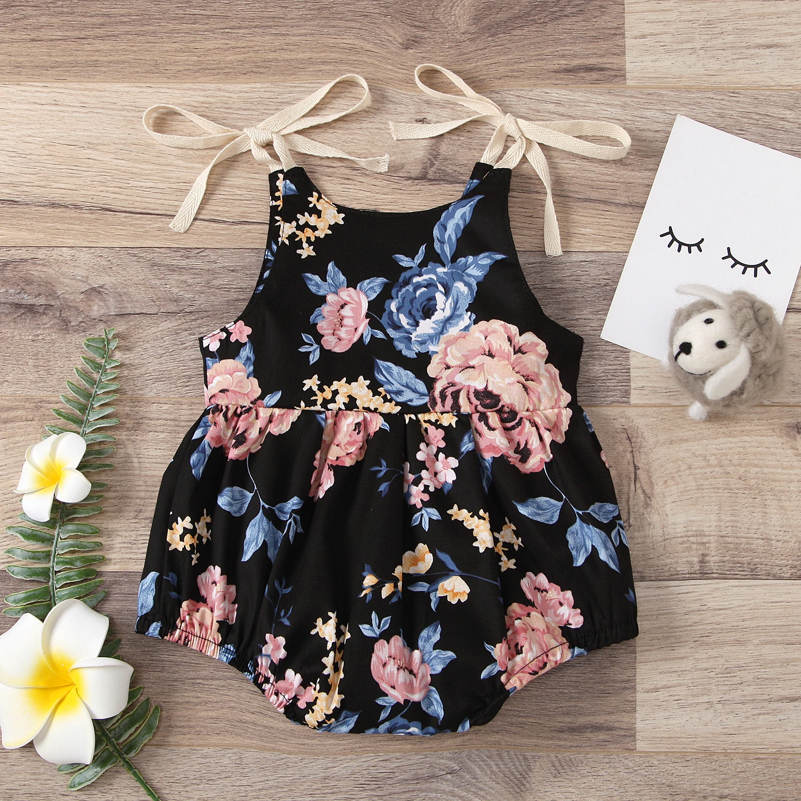 Citgeett летняя одежда для малышей и девочек Цветочный принт с бантом на тонких бретелях боди; Комбинезон для новорожденных; Костюм без рукавов; Цвет черный, белый