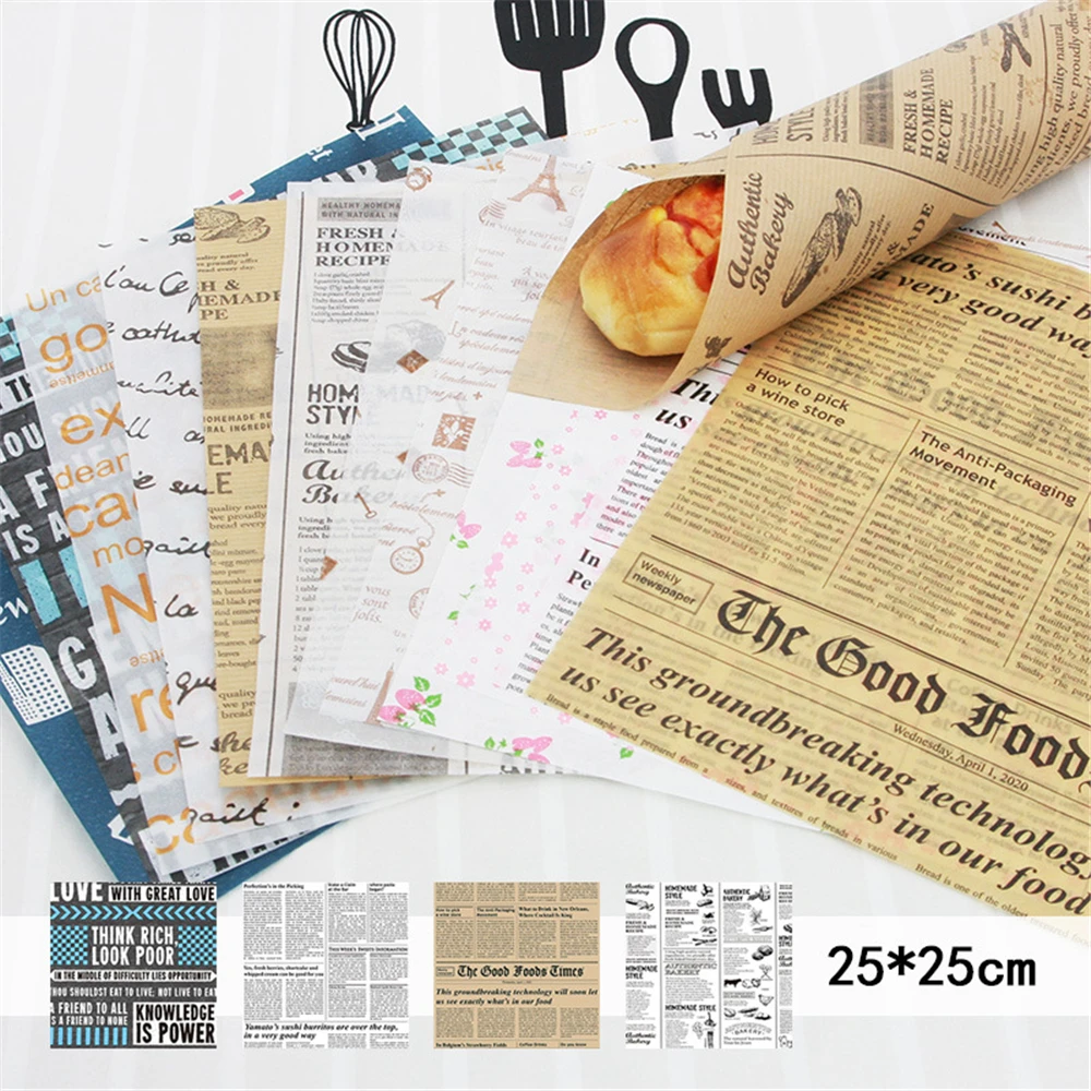 50 шт.лот, Восковая бумага, пищевая смазочная бумага, пищевые обертки, оберточная бумага для хлеба, сэндвичей, бургеров, фри, клейкая бумага, инструменты для выпечки