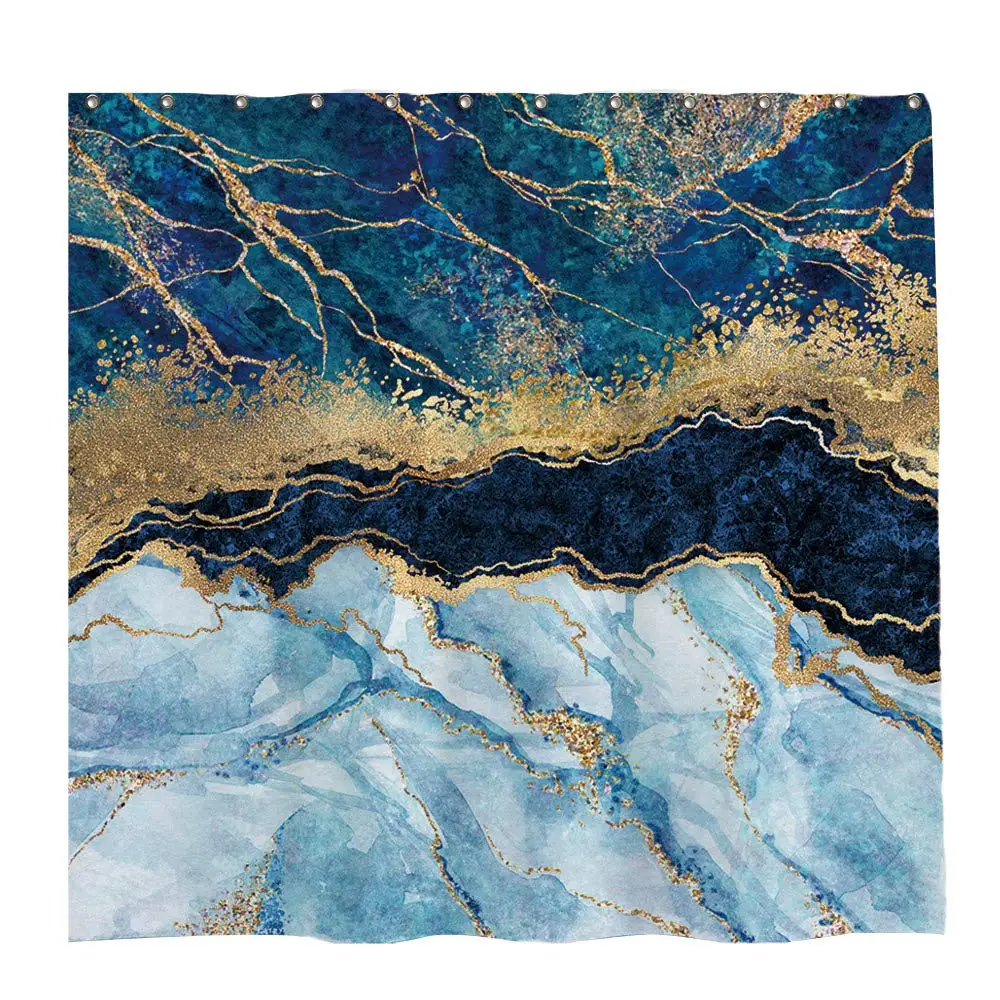 72x72 дюйма Мрамор душ Шторы Темно-синие Смешанная Золотой трещины линии узор текстура Ванная комната Шторы прочный Водонепроницаемый ткань