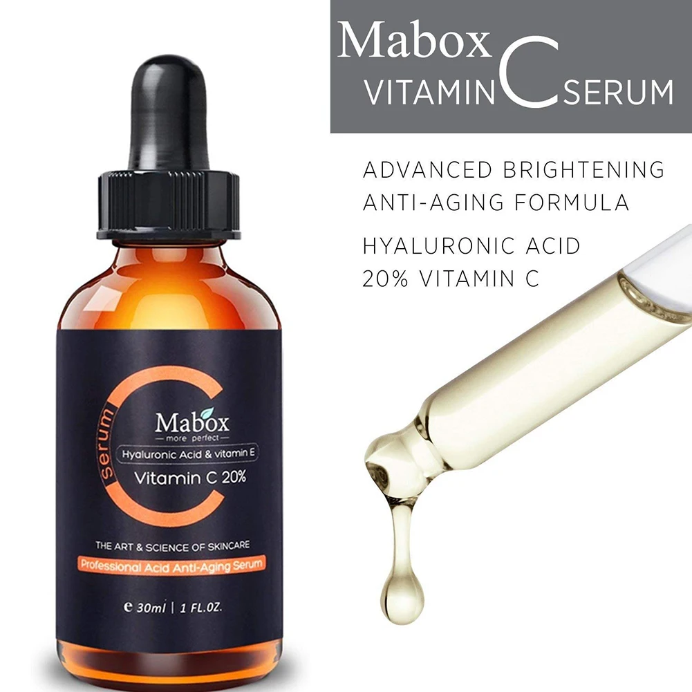 Отбеливающая сыворотка Mabox с витамином C, крем для лица с гиалуроновой кислотой, витамин Е, Органическая антивозрастная Сыворотка для ухода за лицом и глазами