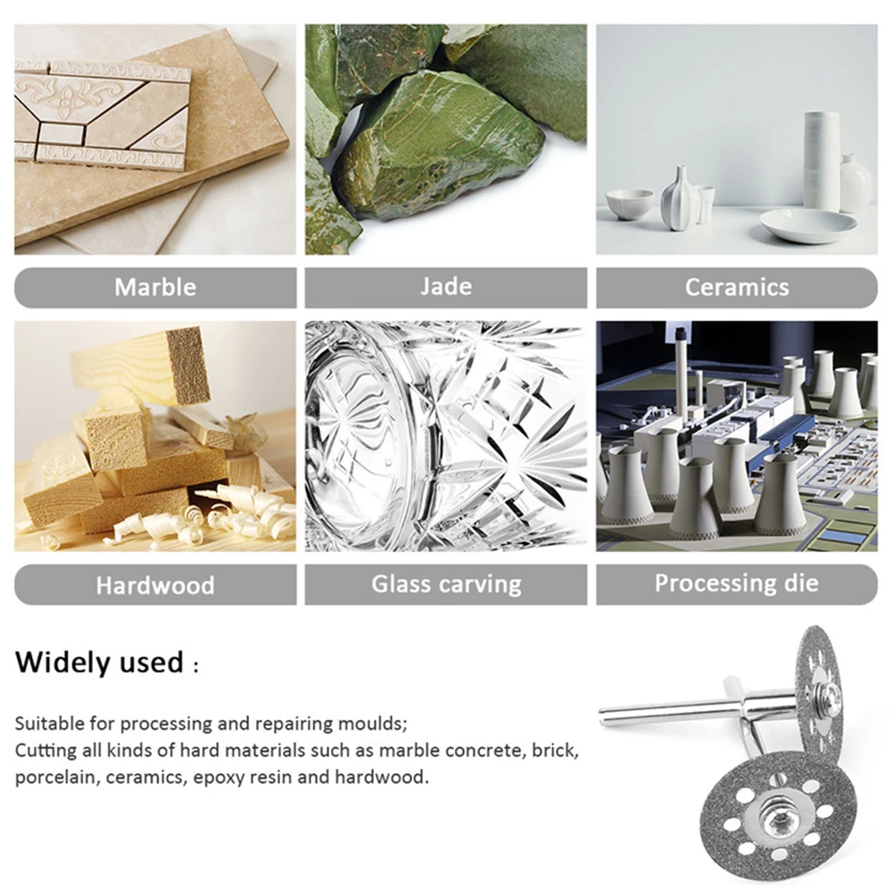 2. Универсальный инструмент: набор режущих колес подходит для всех видов металла, дерева, гипсокартона, пластика, камня, керамики, стекла, твердого сплава, обработка Нефритового камня и многое другое/идеально подходит для резки, обработки канавок и обрезки