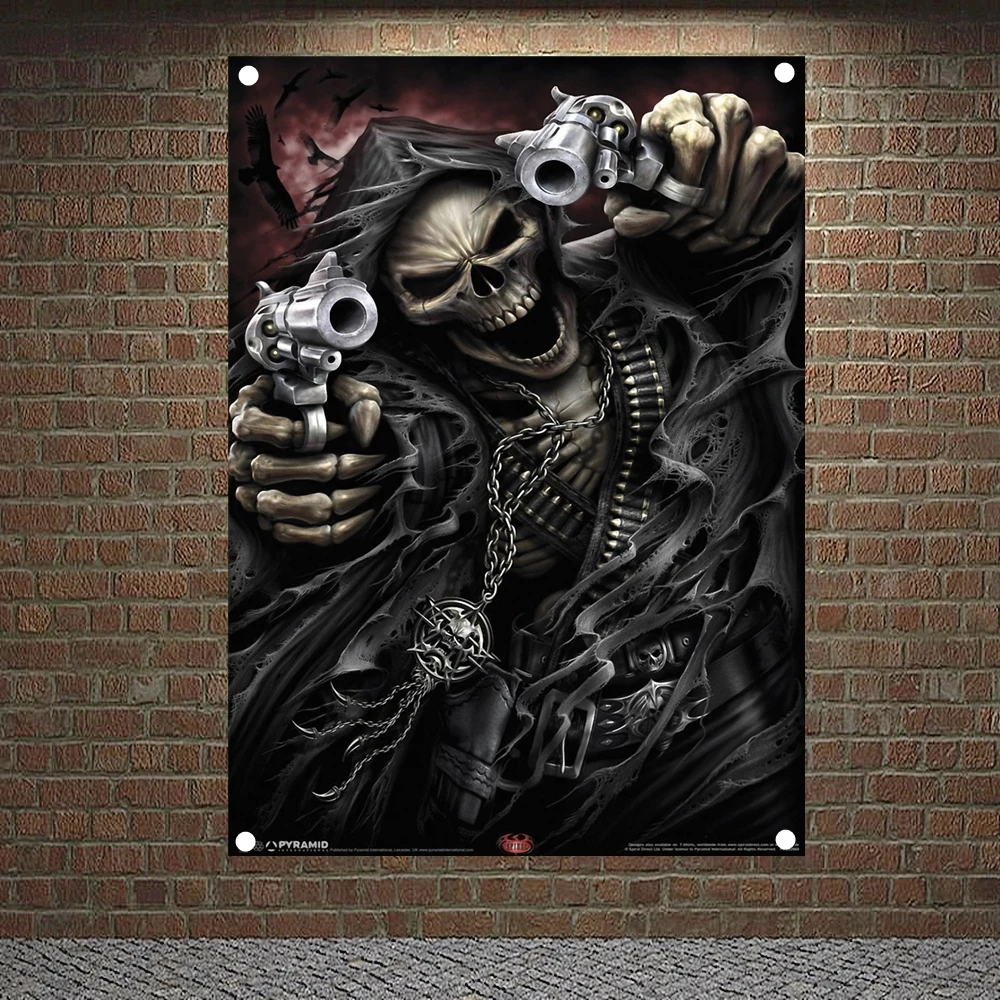 Баннеры со скелетом, баннерами, татуировкой, черепом, флажками, рисунок на холсте, для бара, для кафе, домашний декор, страшные кровавые плакаты, гобелен, настенное украшение