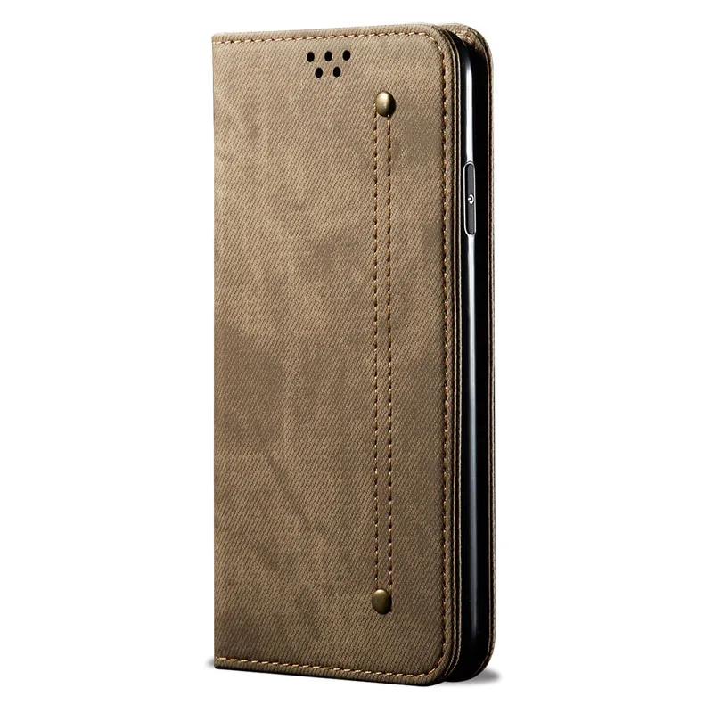 Джинсовые кожаные чехлы-бумажники для Xiaomi Redmi Note 9, чехол с ...