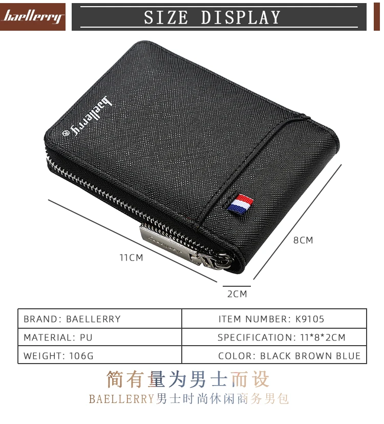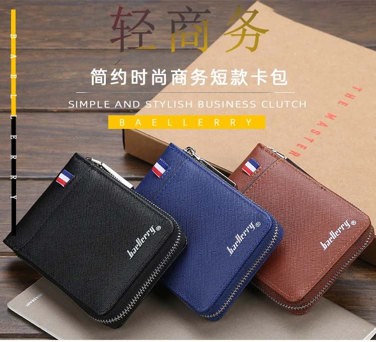 Новый модный мужской кошелек на молнии, маленький короткий держатель для кредитных карт для мужчин, Винтажный Мужской мини-кошелек с карманом для монет