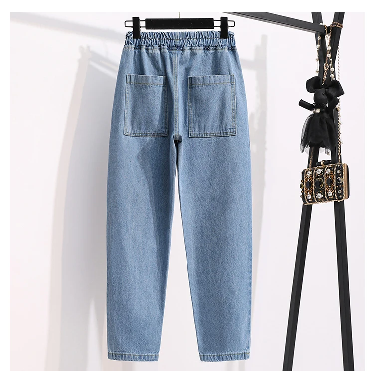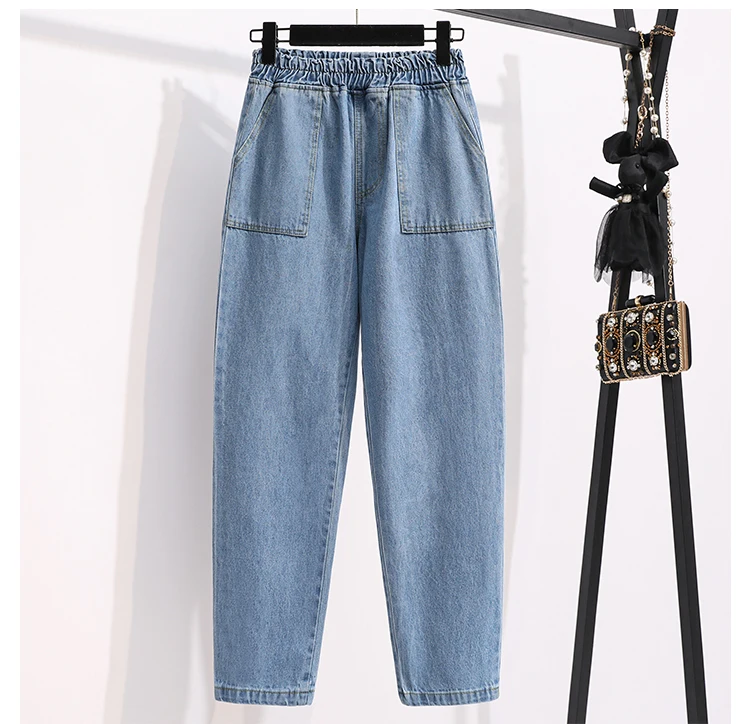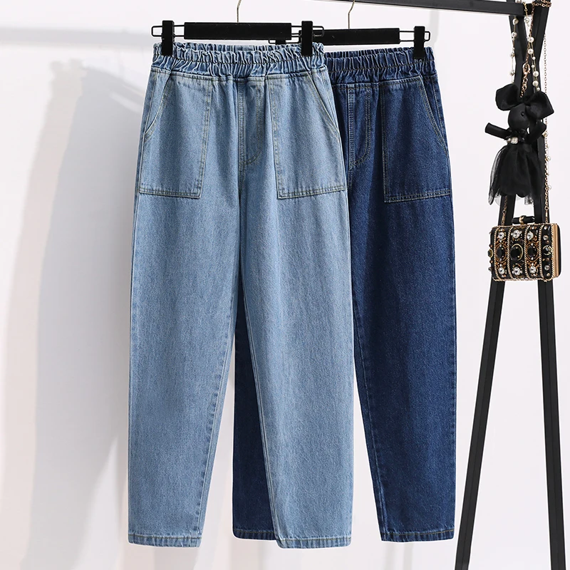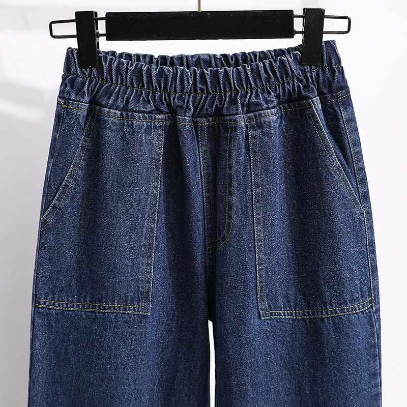 Женские джинсы с высокой талией DIMANAF, синие свободные брюки с эластичной талией, с карманами, для весны, 2021