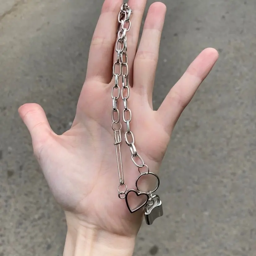 Kpop панк винтажное готическое ажурное сердце перо кулон Металлические Цепи чокер ожерелье для женщин Харадзюку эстетические ювелирные изделия украшения на шею косплей аксессуары подарок девушке 2021
