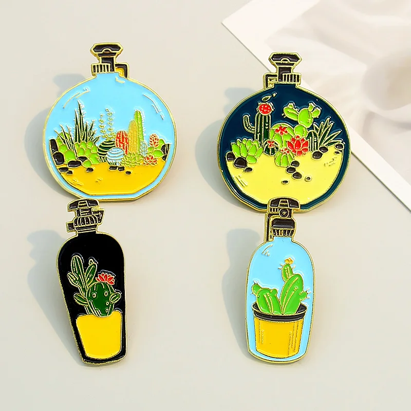 Модный темпераментный значок креативный мультяшный кактус флакон дл...