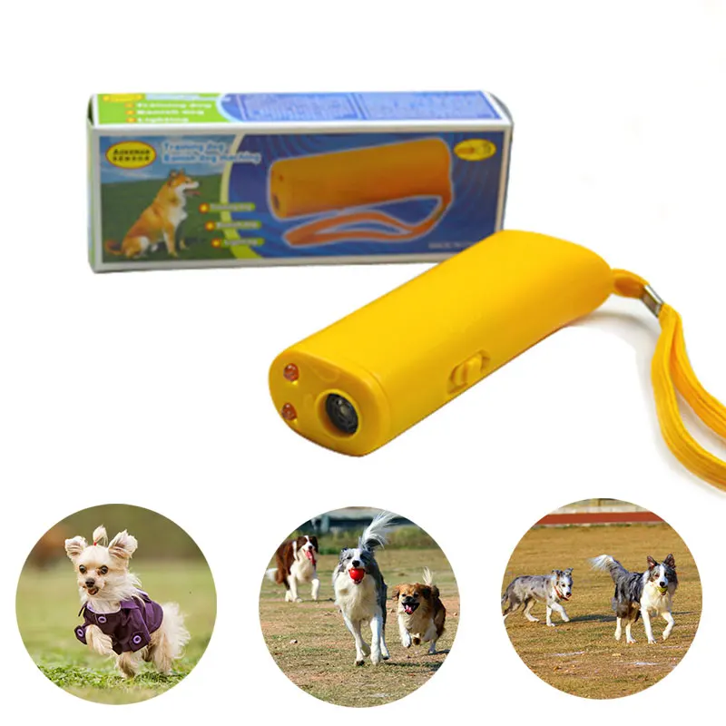 Светодиодный тренажер ультразвуковой 3 в 1 1 шт. черный Отпугиватель против лай Стоп лай тренировочное устройство Желтая Собака