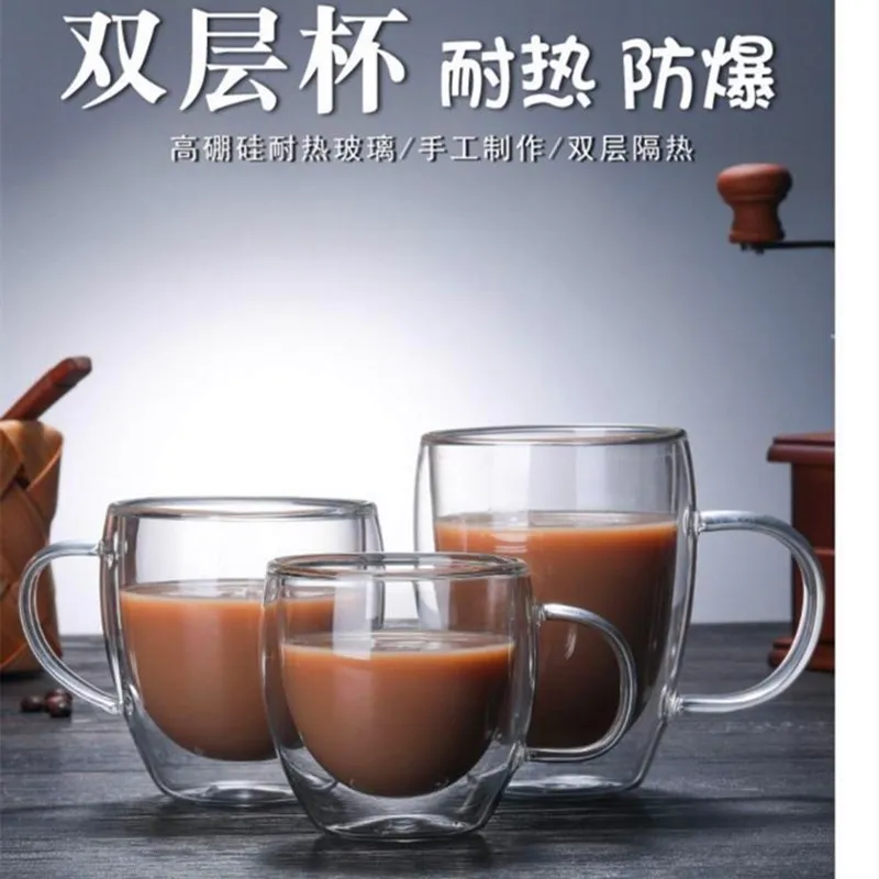 Стеклянные Прозрачные Термостойкие чашки ручной работы с двойными стенками для чая и напитков, Кружка для здоровых напитков, кофейные чашки, стеклянные Фотообои