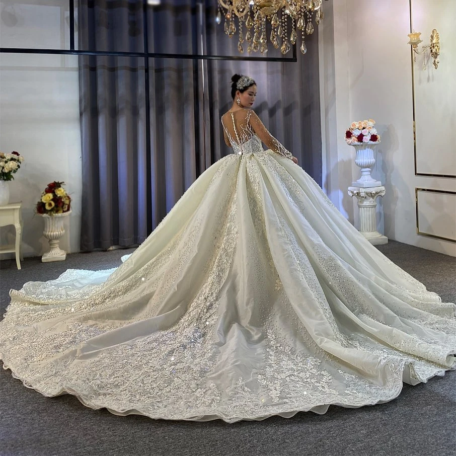 Роскошные свадебные платья с бисером, бальное платье с длинным рукавом, свадебные платья в Дубае, кружевные аппликации со шлейфом