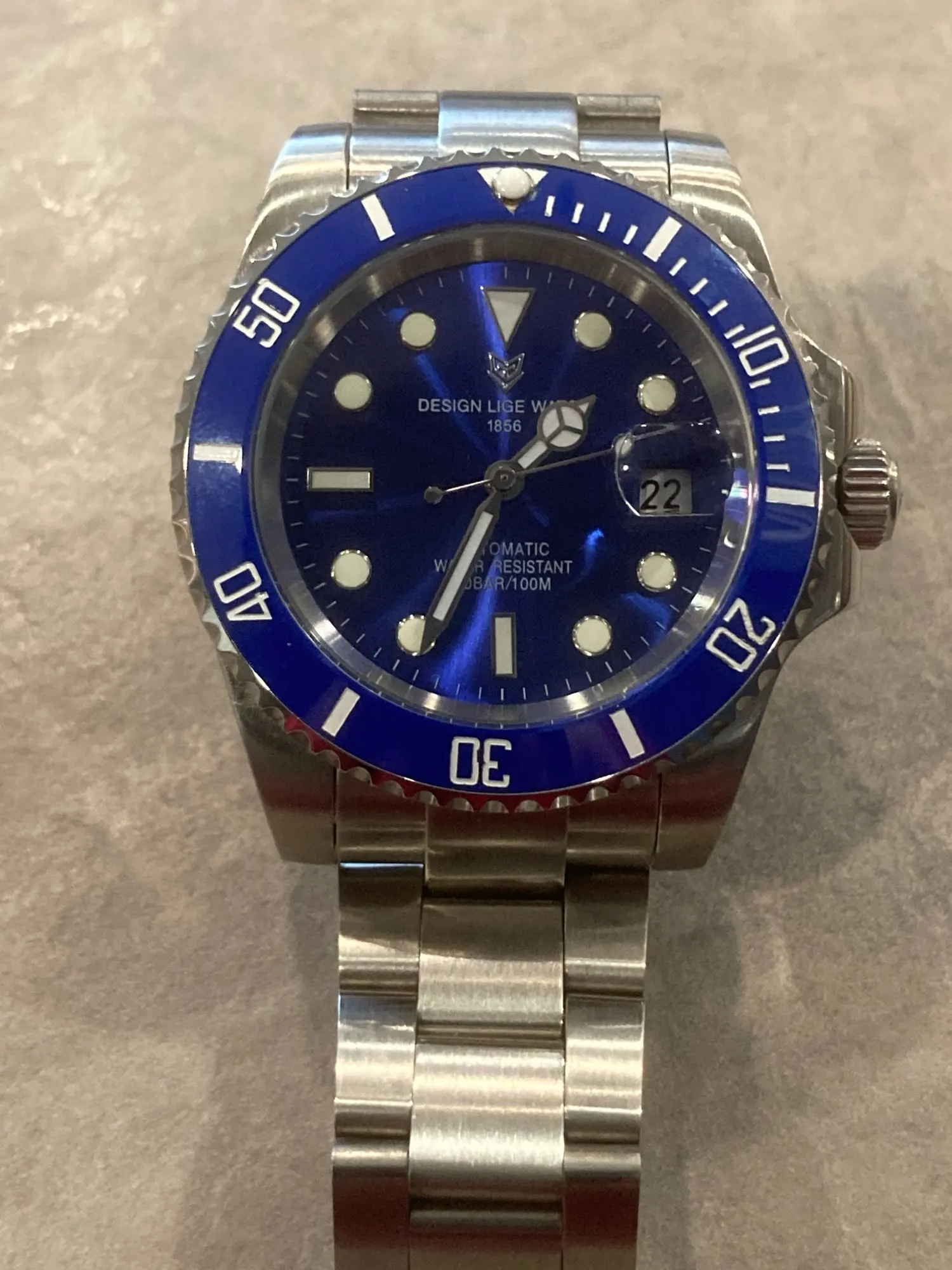 Доставка из Китая в Великобританию всего за 7 дней! Фантастическое обслуживание! Прекрасное очарование подводника. Керамический однонаправленный ободок, винтовая заводная головка, матовый корпус из нержавеющей стали и браслет. Застежка-бабочка из нержавеющей стали. Это моя третья Lige Автоматическая (красная и зеленая, мои две другие покупки). Я бы определенно порекомендовал эти часы-и этот продавец.