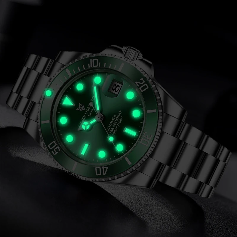 Часы Мужские автоматические механические с сапфировым стеклом, нержавеющая сталь 316L, водонепроницаемые, 2021
