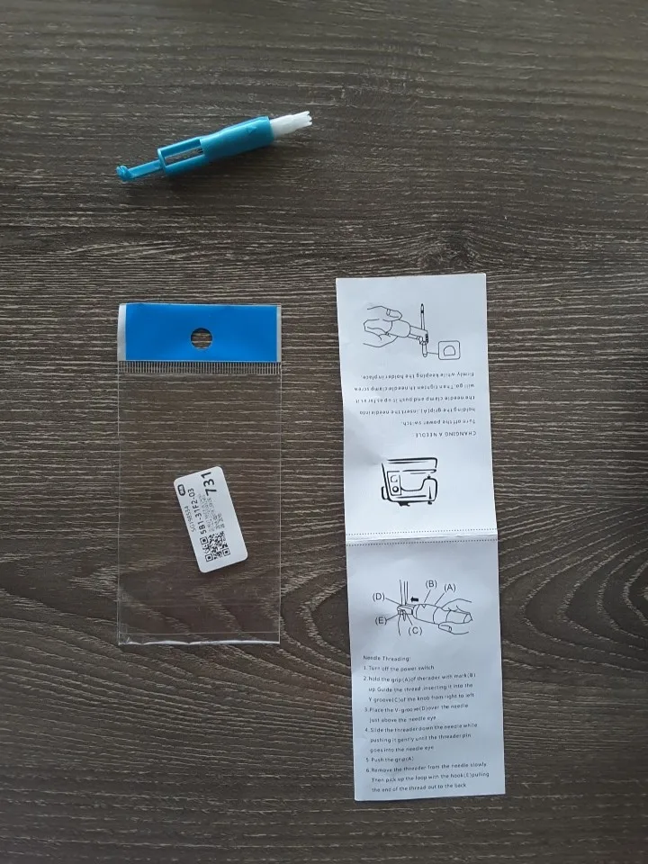 нитевдеватель очень странный, чтобы видеть нитку надо потратить достаточно много времени. с первого раза вообще ничего не получилось. думала все будет просто, но нет, без танцев с бубном не обойтись. и еще, белая часть состоит из двух частей и при вдевании нитки разъединяется, что не дает нитке попасть с первого раза в иголку (как я видела на видео у других продавцов) (( может мне такой попался, а может все так сделаны. попробовала точного суперклеем закрепить, может поможет. поэтому брать или нет решайте сами.