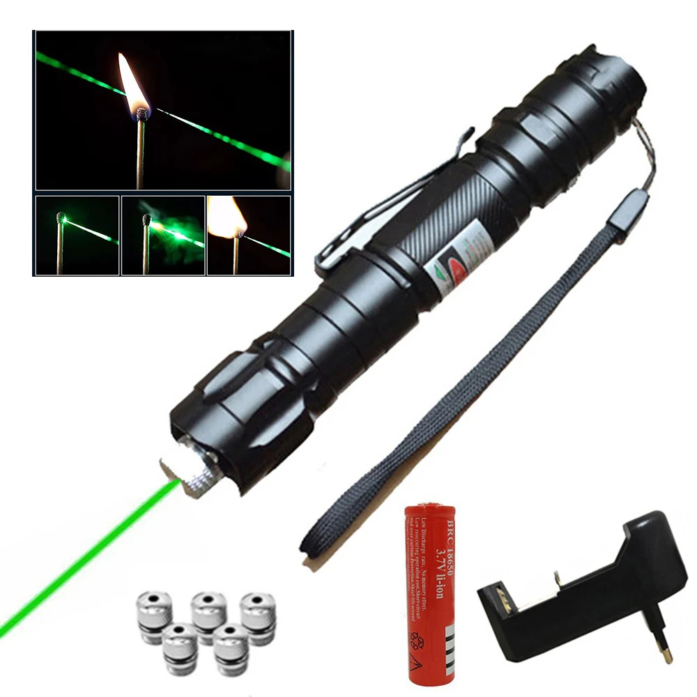 Высокая мощность зеленый лазерный наконечник 5 мВт 532 нм игрушка кошка Военная мощная лазерная указка для регулировки фокуса + зарядное устройство + 18650 батарея лазерный комплект