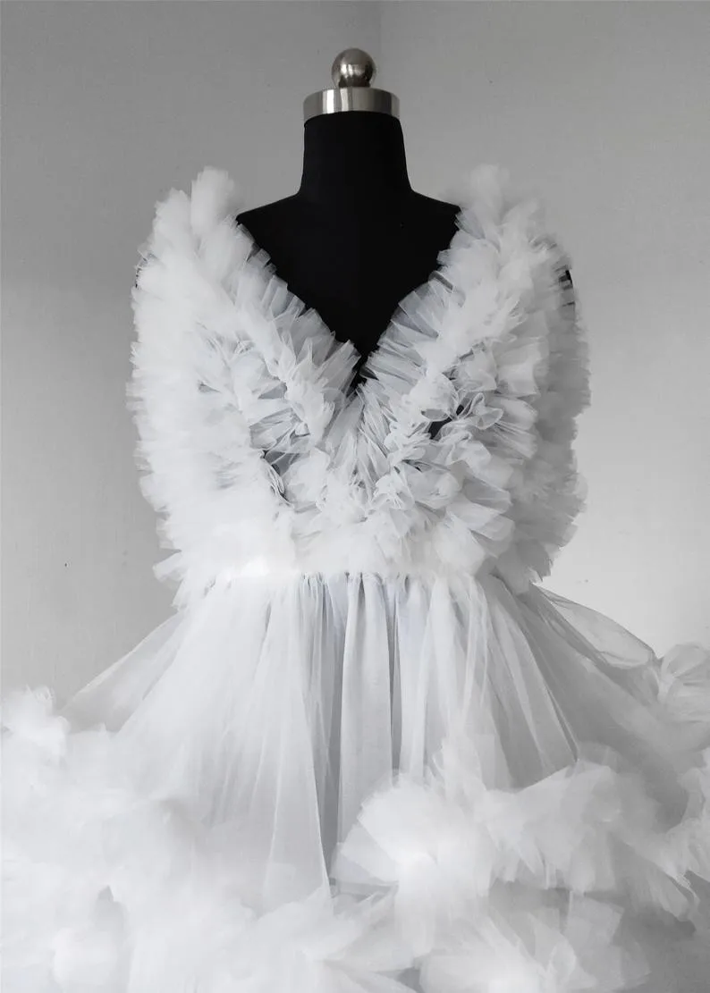Сдержанный пышный длинный тюлевый халат женские платья для беременн...